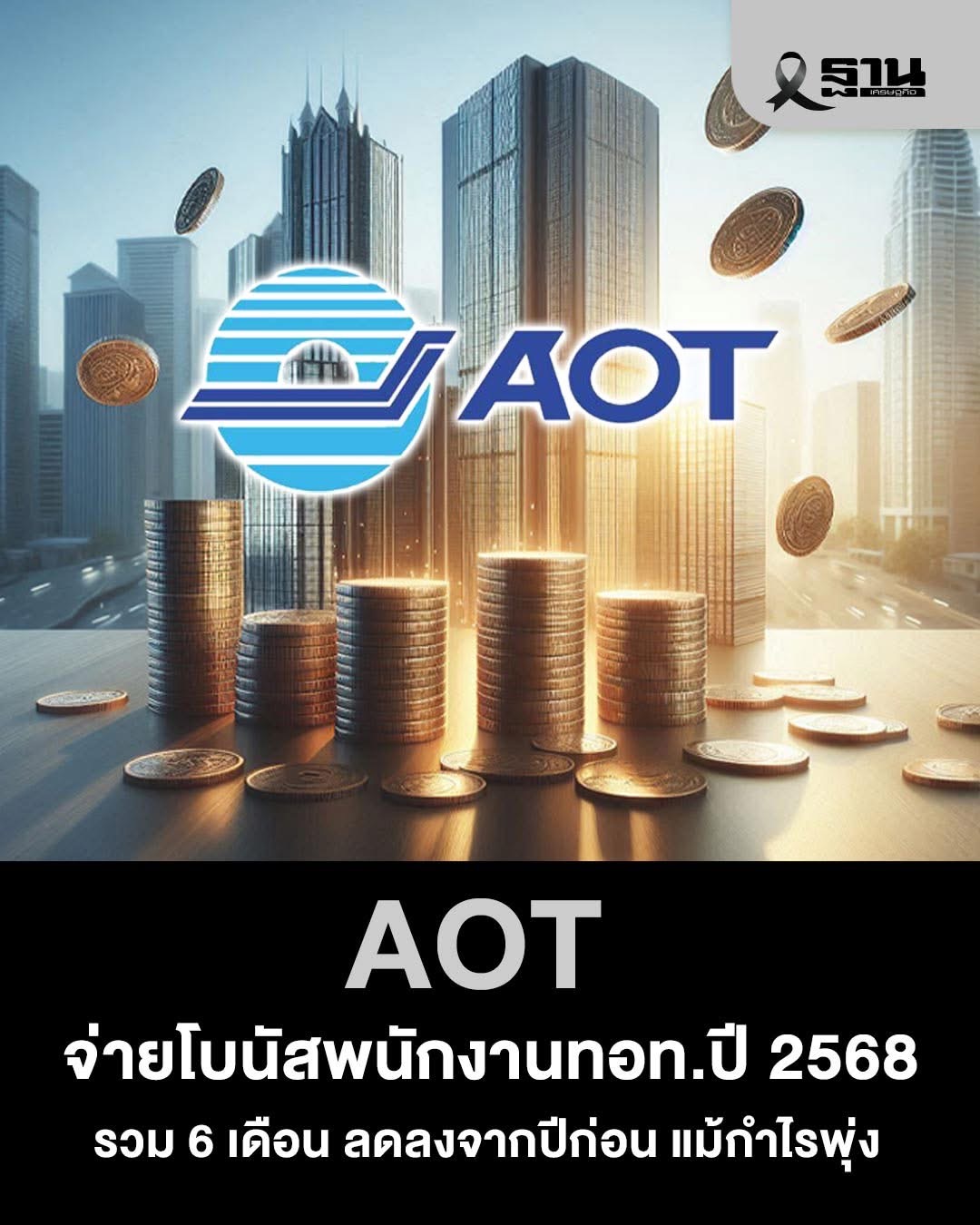 AOT จ่ายโบนัสพนักงานทอท. ปี 2568 รวม 6 เดือน ลดลงจากปีก่อน 2 เดือน แม้กำไรพุ่ง เหตุจากต้องกันเงินไว้สำหรับการขยายสนามบิน