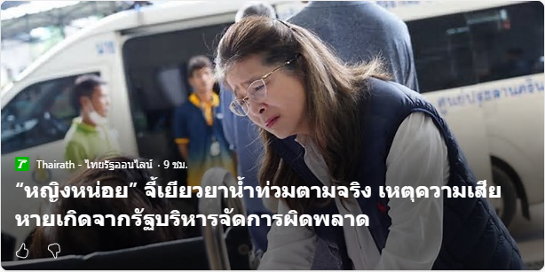 'หญิงหน่อย'โพสต์เห็นใจชาวอีสานน้ำตาอาบแก้มนาข้าวจมน้ำ กระตุกรัฐช่วยด่วน https://www.matichon.co.th/news-monitor/news_1655235 ‘หญิงหน่อย’โพสต์เห็นใจชาวอีสานน้ำตาอาบแก้มนาข้าวจมน้ำ กระตุกร