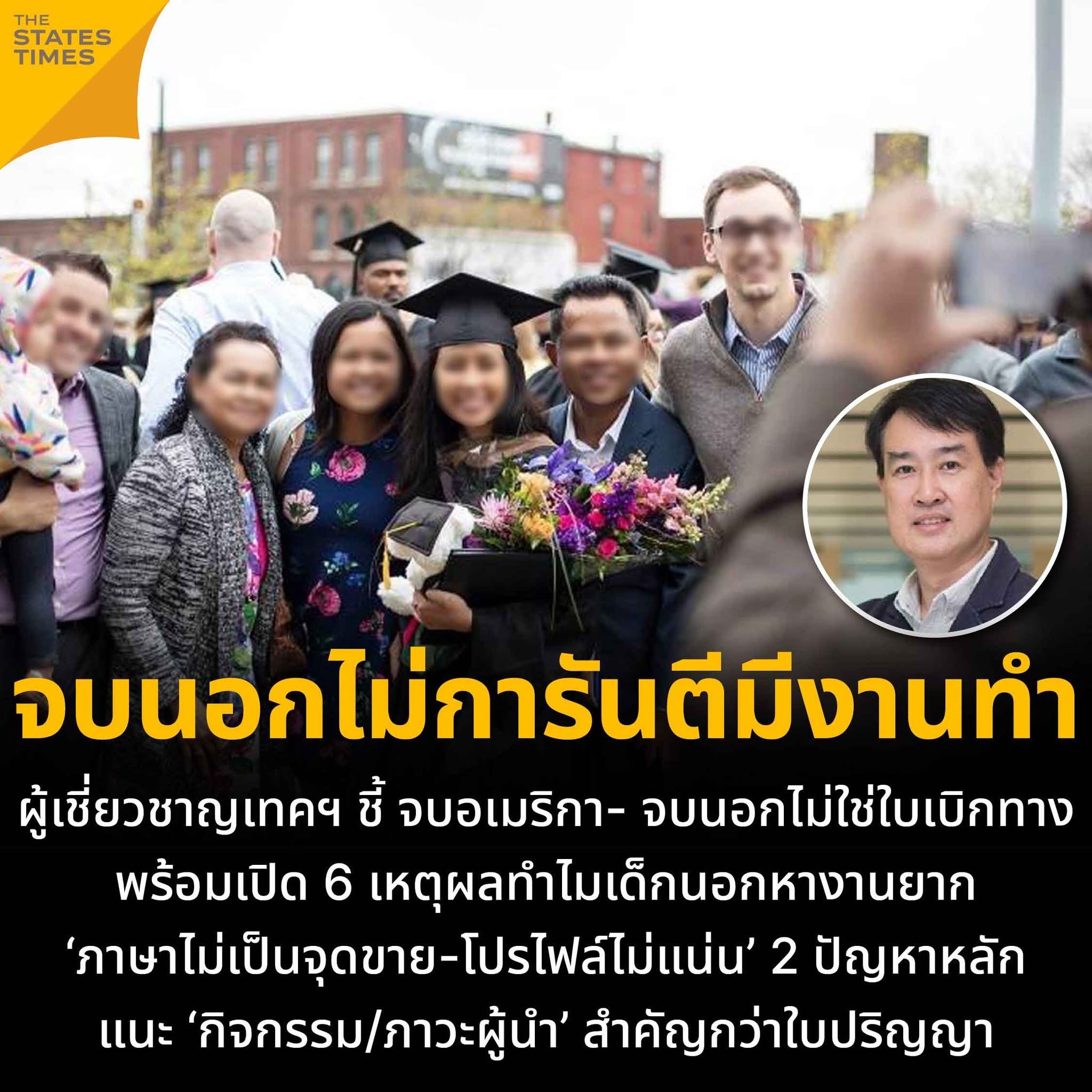 4) เด็กต่างชาติที่เรียนในอเมริกาต้อง “โดดเด่นกว่า” เพื่อเอาชนะข้อจำกัด เพราะการแข่งขันเข้าฝึกงานของนักศึกษาต่างชาติในบริษัทชั้นนำในเอมริกาโหดมาก มีแค่ประมาณ 10% ที่ได้ฝึกงาน และจากกลุ่มนั้นจะมีเพียง 10% ที่ได้ job offer จริง คนที่ได้งานต่อ เงินเดือนเกิน 200,000 บาทเป็นเรื่องปกติ แต่ที่สำคัญกว่าคือ “โอกาสเติบโตในสายงาน” ซึ่งไม่ได้มอบให้ทุกคน