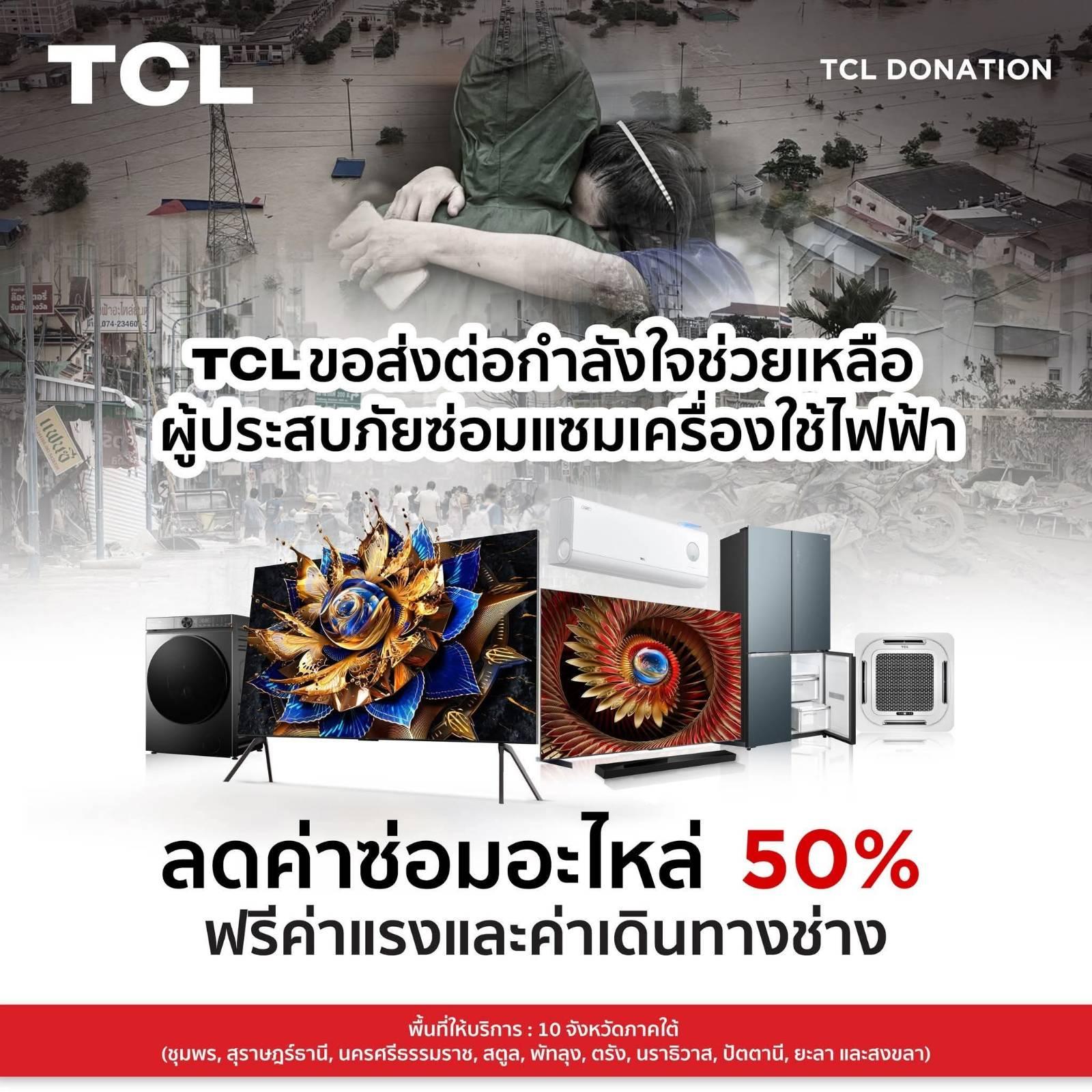 TCL ช่วยผู้ประสบภัยภาคใต้ซ่อมเครื่องใช้ไฟฟ้าฟรีค่าแรง ลดค่าอะไหล่ 50%