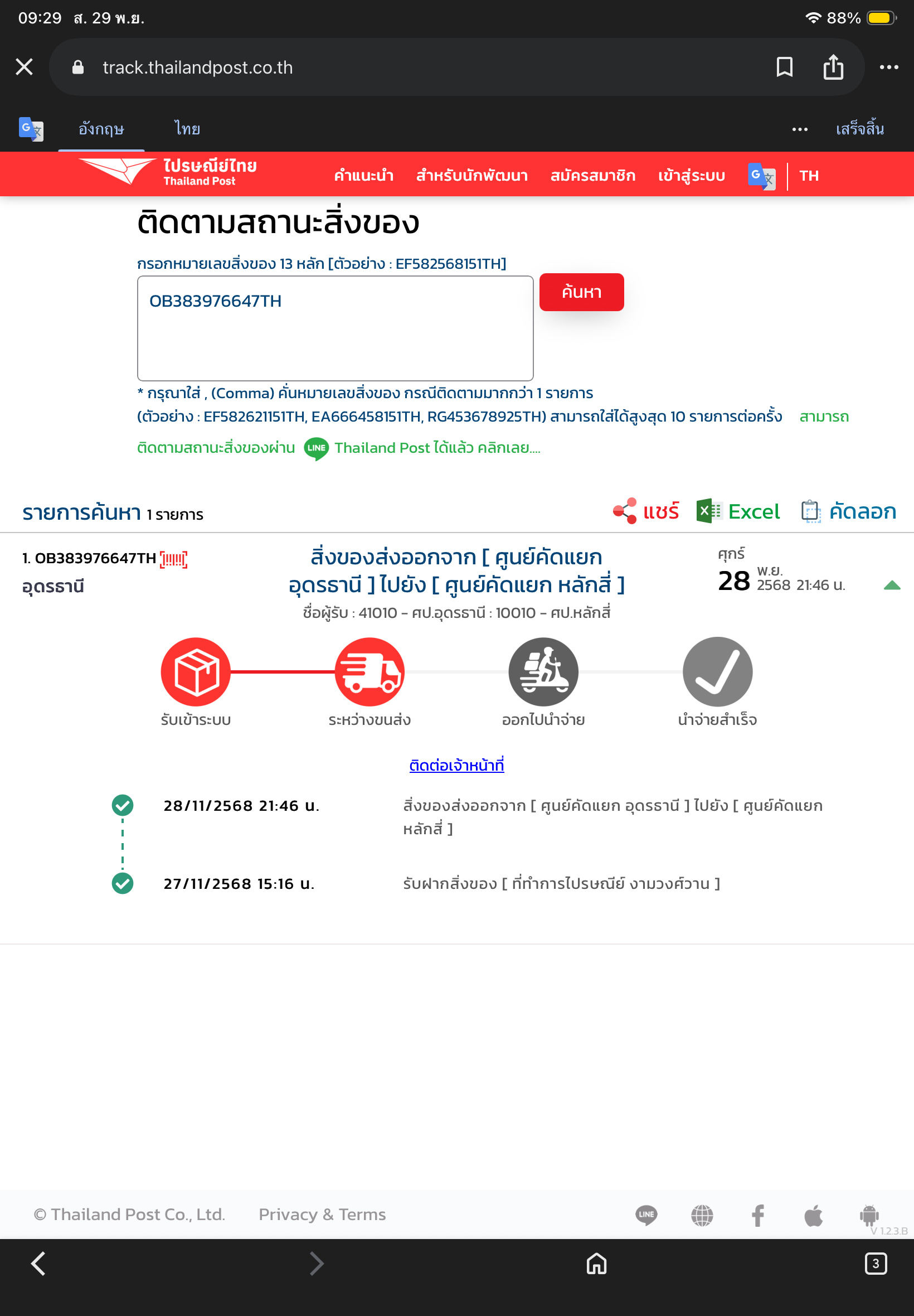 สั่งของจากเพจ จากกรุงเทพ มา สุรินทร์ ทำไมของไปอยู่ที่อุดร