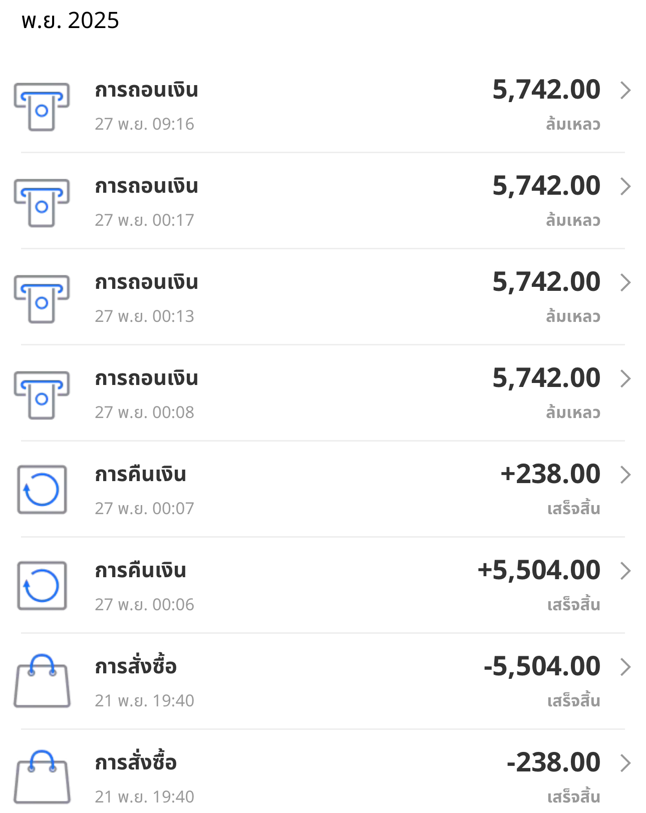 ตามรูปเลยค่ะ ถอนเงินมาจะเป็นเดือนแล้ว ยังไม่ได้คืน ใส่ข้อมูลถูกต้องหมดทุกอย่าง มีแต่บอกว่าล้มเหลวๆ เงินไม่ใช่น้อยๆอะ ทักตามหน้าเพจของ Lazada ก็บอกว่าทำได้แค่เช็คสถานะให้ ต้องรอ Lazada โอนให้อย่างเดียว