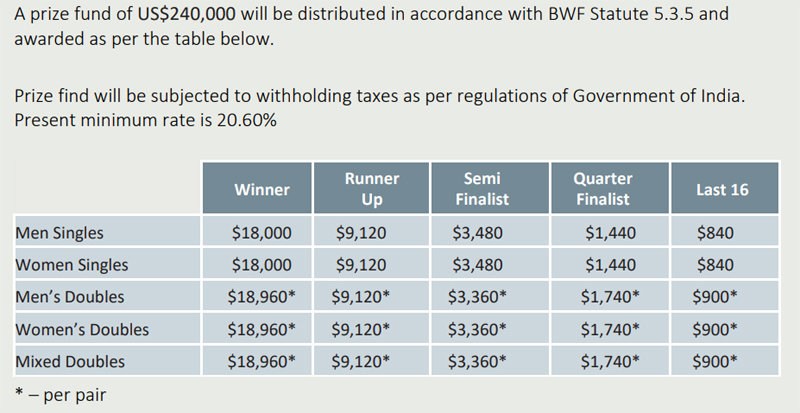 • ระดับของรายการ : HSBC BWF World Tour Super 300 (Grade 2 Level 5)