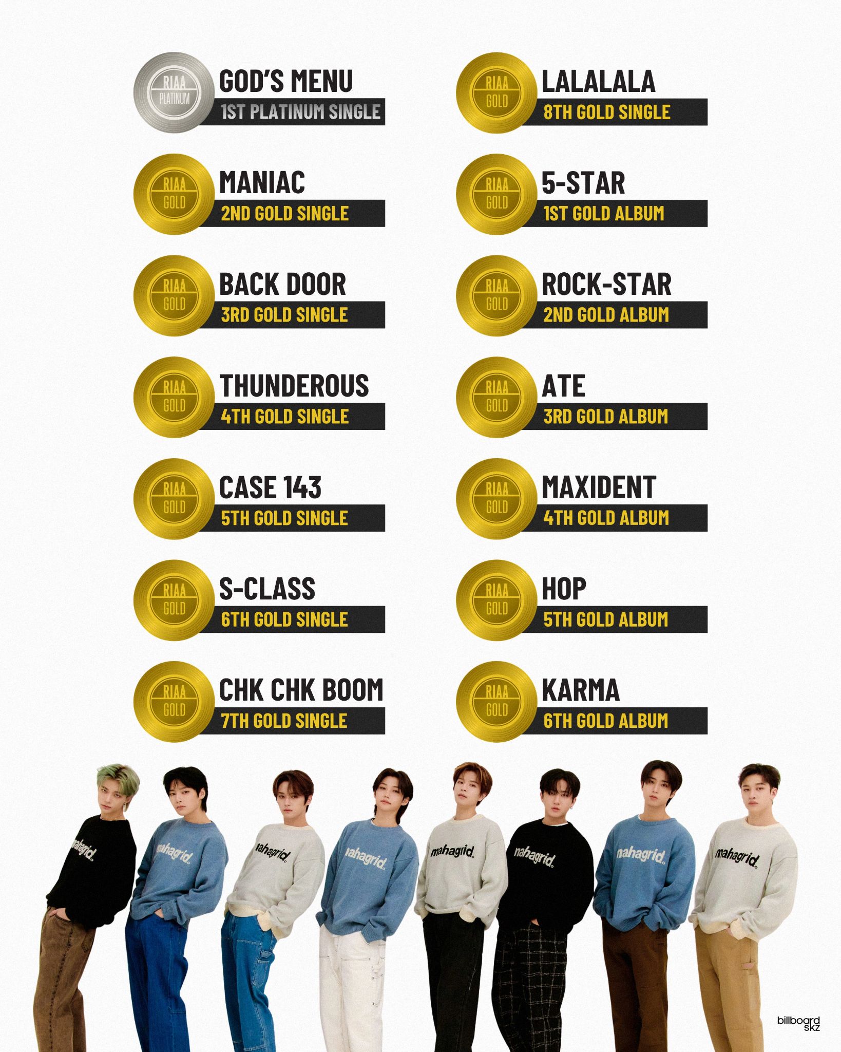 ทำให้ SKZ เป็นอันดับ 1 ของเจน 4 ที่ได้รับการรับรอง RIAA Single มากที่สุด และเป็นอันดับ 2 ของ K-pop