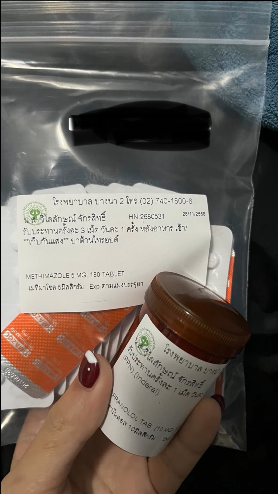 สวัสดีค่ะ พอดีป่วยเป็นไทรอยด์ตาโปน แล้วคุณหมอให้ยามาสองตัวคือยาต้านไทรอยด์กับโพรพราโนลอล(เพราะมีอาการใจสั่น)
