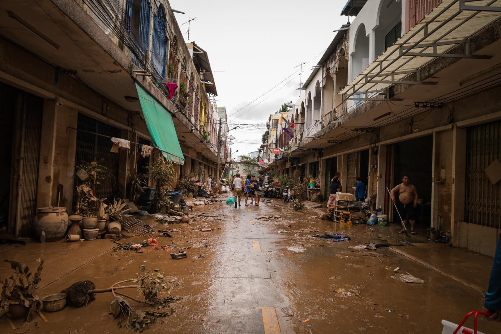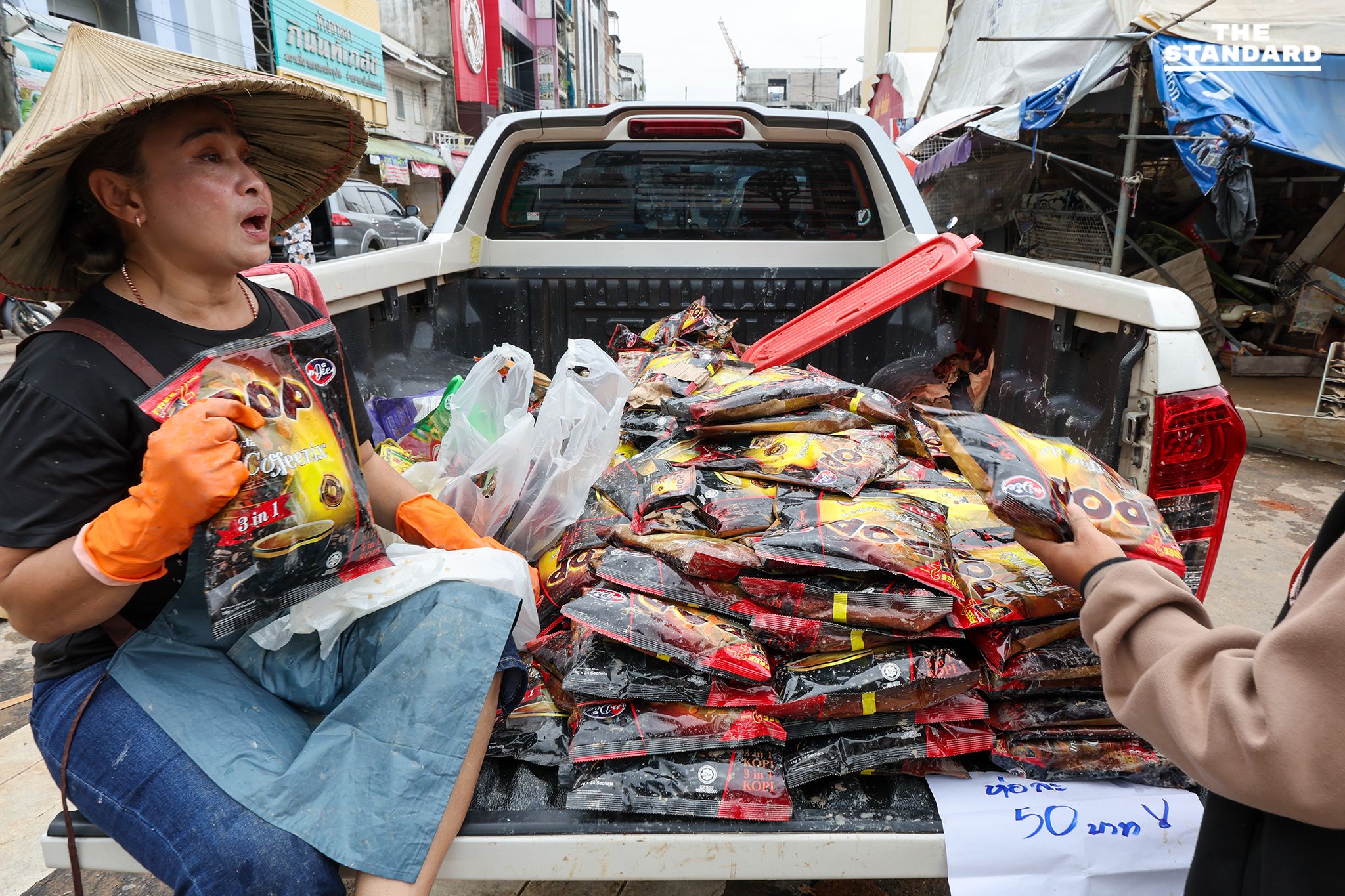 ชาวบ้านเขต 8 แห่ขนเบียร์จากตู้คอนเทนเนอร์กลางเมืองหลังน้ำลด