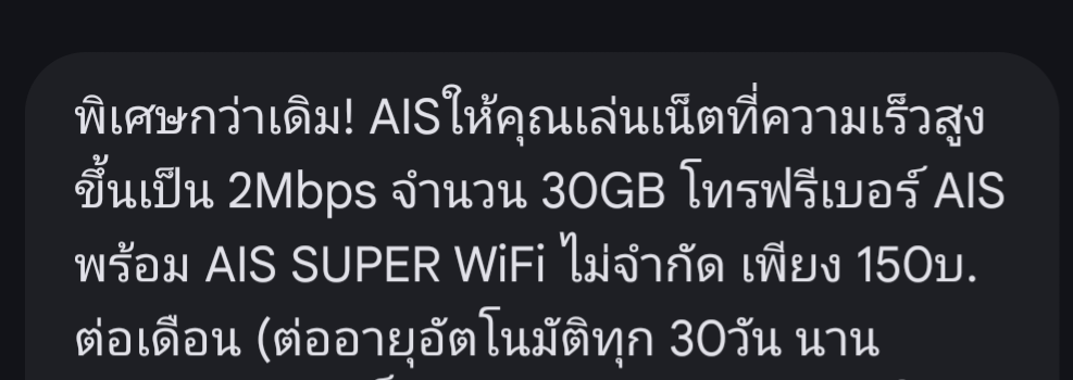 สอบถามครับมีใครได้รับข้อความจากเอไอ เอส โปรเน๊ตนี้บ้างครับคุ้มมั้ย