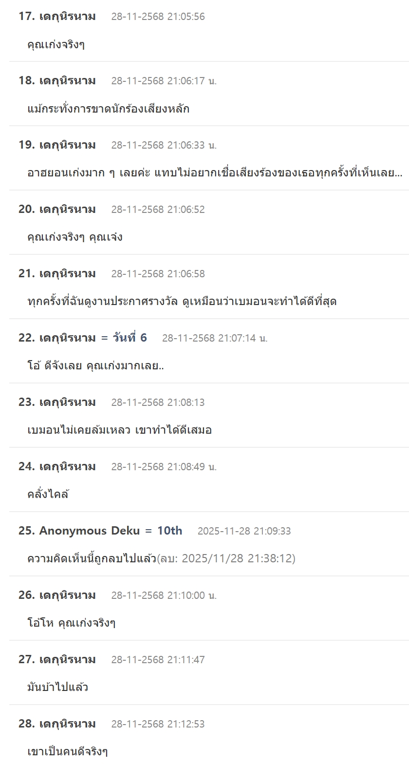 อีกกระทู้เป็นการคัดเอาวงที่แสดงสดเมื่อคืนแล้วดูดีที่สุด