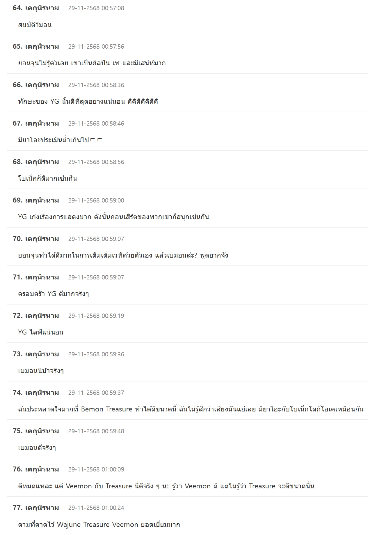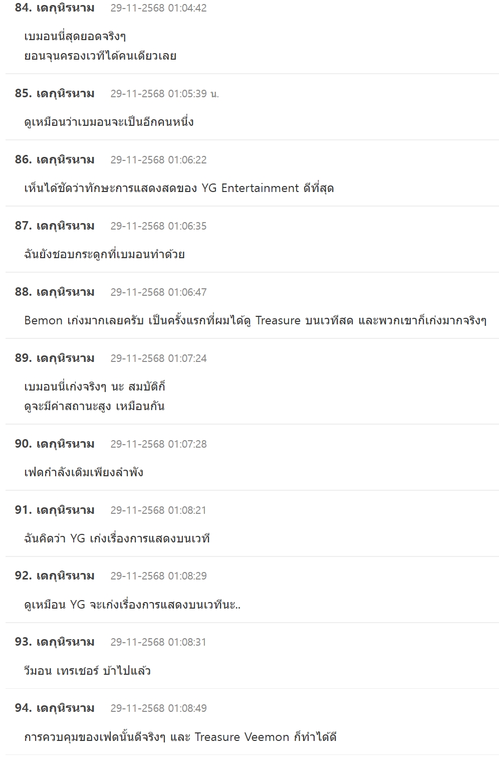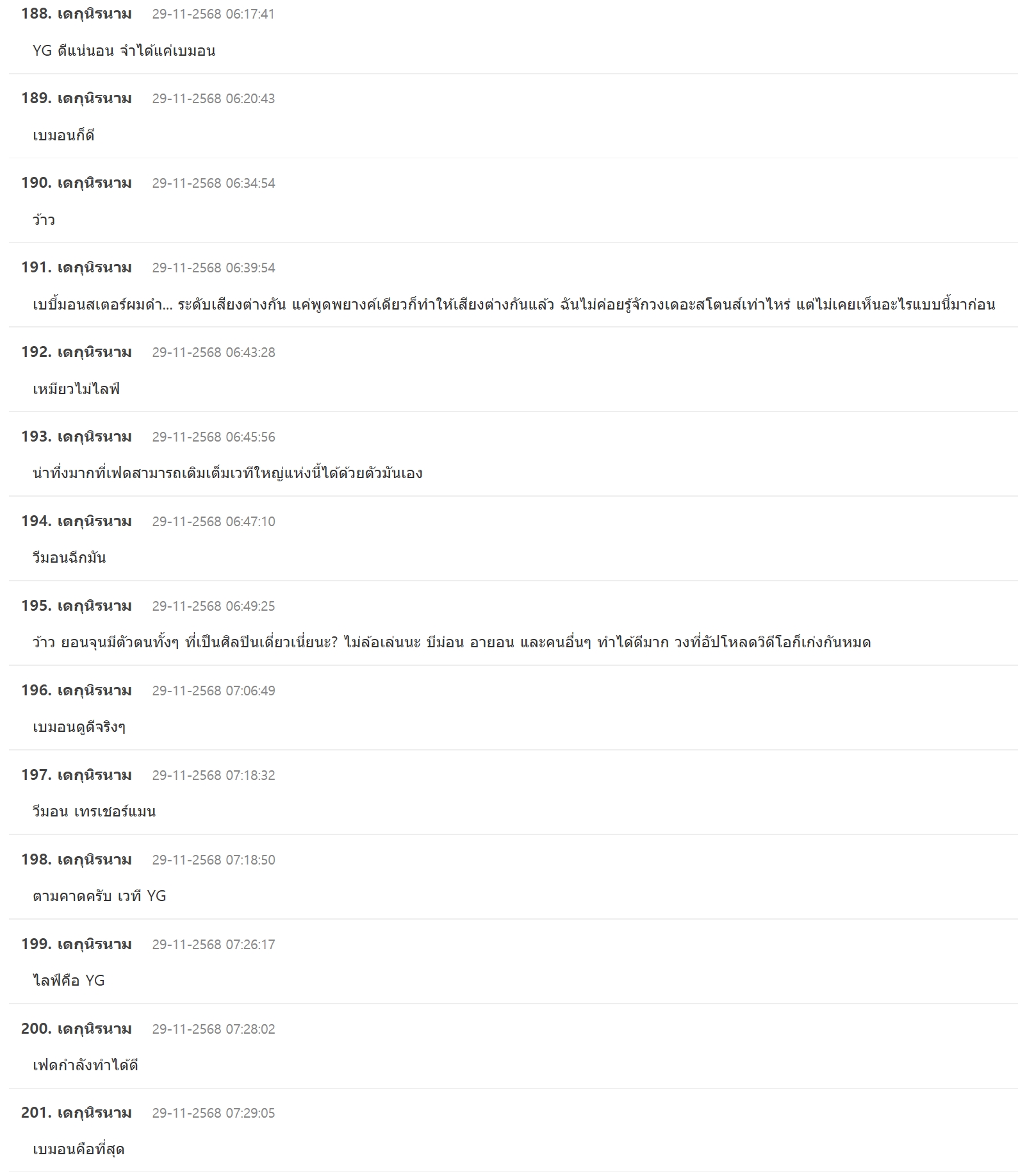 แล้วพูดตรงกันว่าศิลปินจาก YG หรือที่ฝึกกับ YG มาทุกคนแสดงสดได้ดีมากๆ ฝึกฝนมาได้ดีจริงๆ