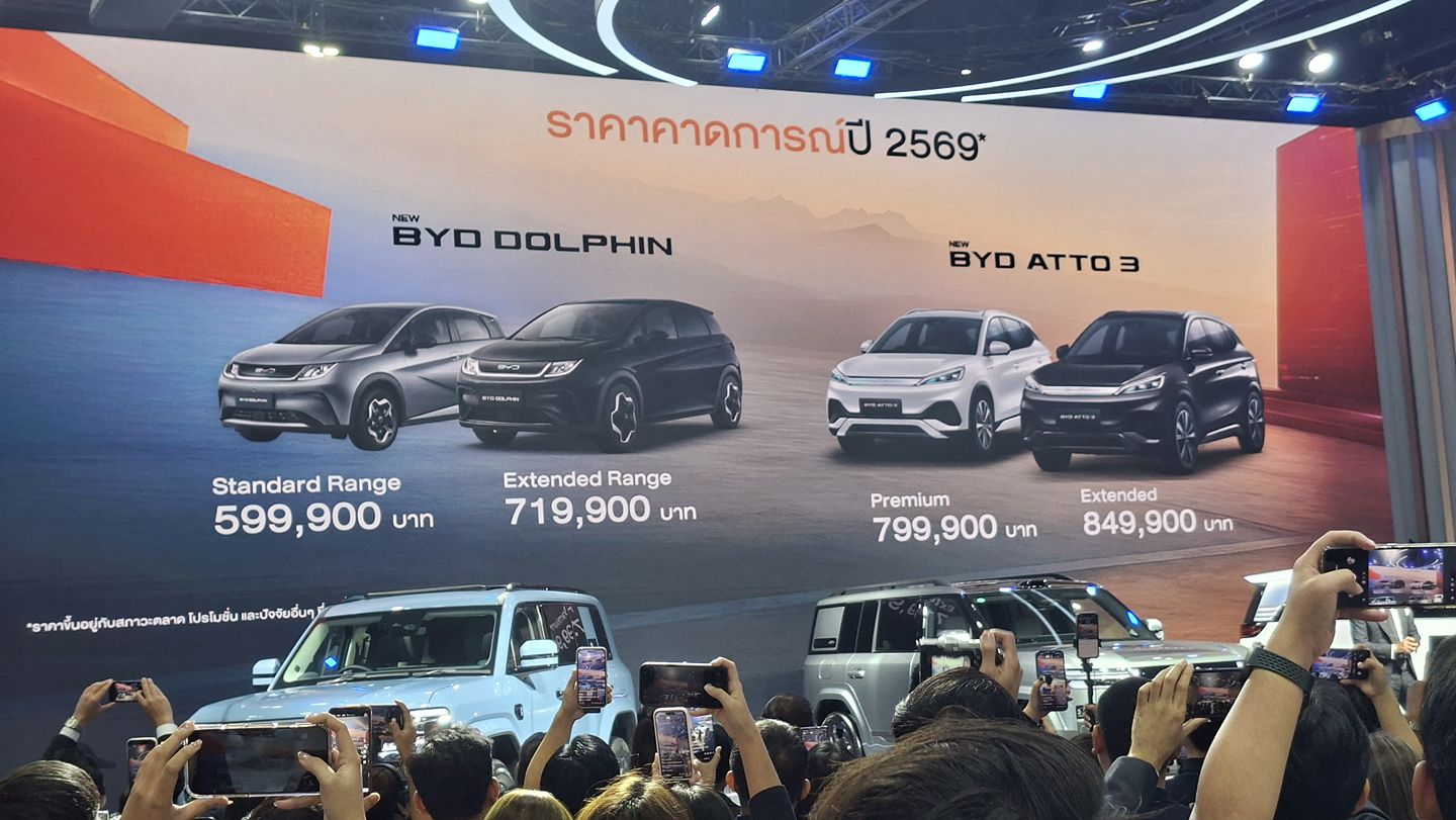 BYD เตรียม ‘ขึ้นราคา’ รถหลายรุ่นในปี 2569 โดย ‘Dolphin’ จะเริ่มต้นราว 600,000 บาท และ ‘ATTO 3’ เริ่มต้นเกือบ 800,000 บาท ขณะที่รุ่นนำเข้า M6, SEAL, และ SEALION 7 แตะระดับหลักล้านบาท เนื่องจากมาตรการ EV 3.0 สิ้นสุดลง