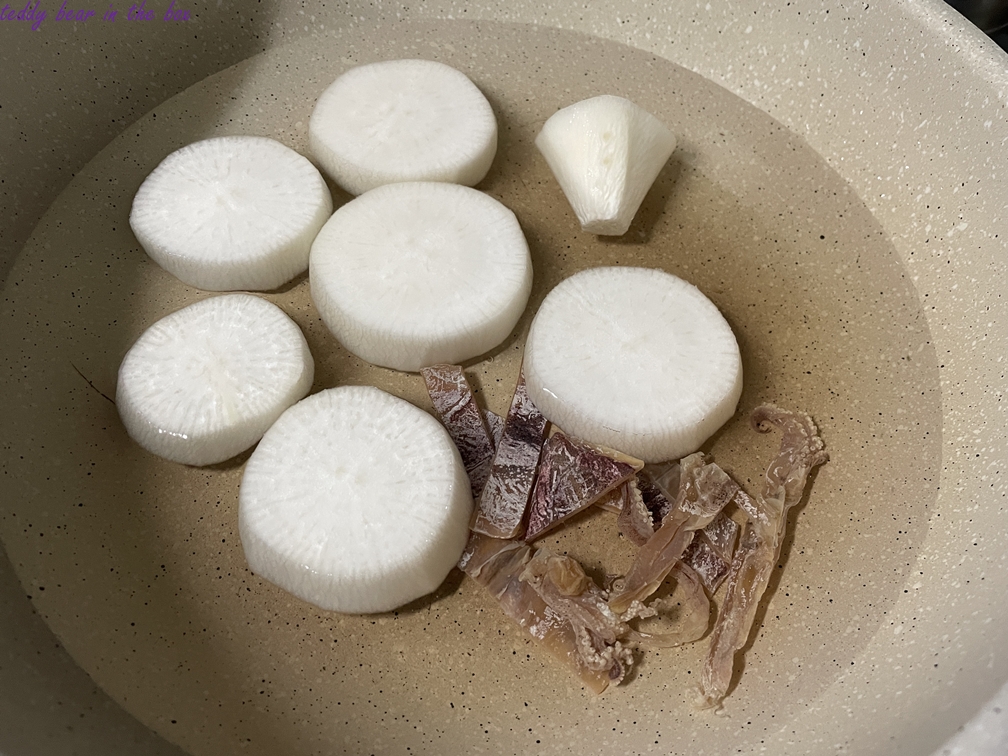 ได้น้ำซุปที่หวานจากหัวไชเท้ากับปลาหมึก