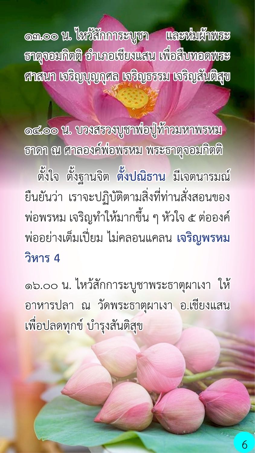 ๑๖.๐๐ น. ไหว้สักการะบูชาพระธาตุผาเงา ให้อาหารปลา ณ วัดพระธาตุผาเงา อ.เชียงแสน เพื่อปลดทุกข์ บำรุงสันติสุข