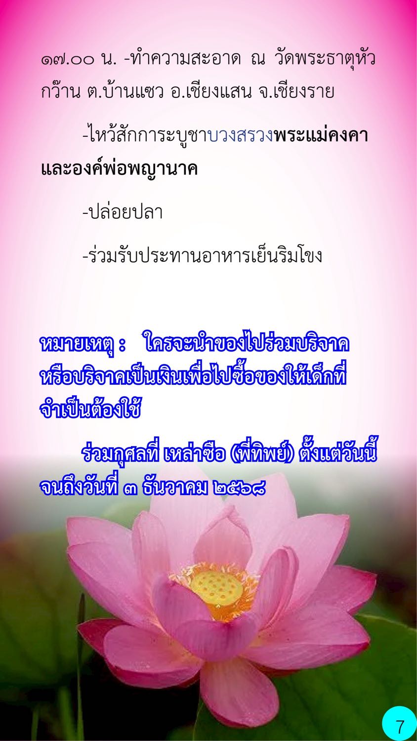 ร่วมกุศลที่ เหล่าซือ (พี่ทิพย์) ตั้งแต่วันนี้จนถึงวันที่ ๓ ธันวาคม ๒๕๖๘
