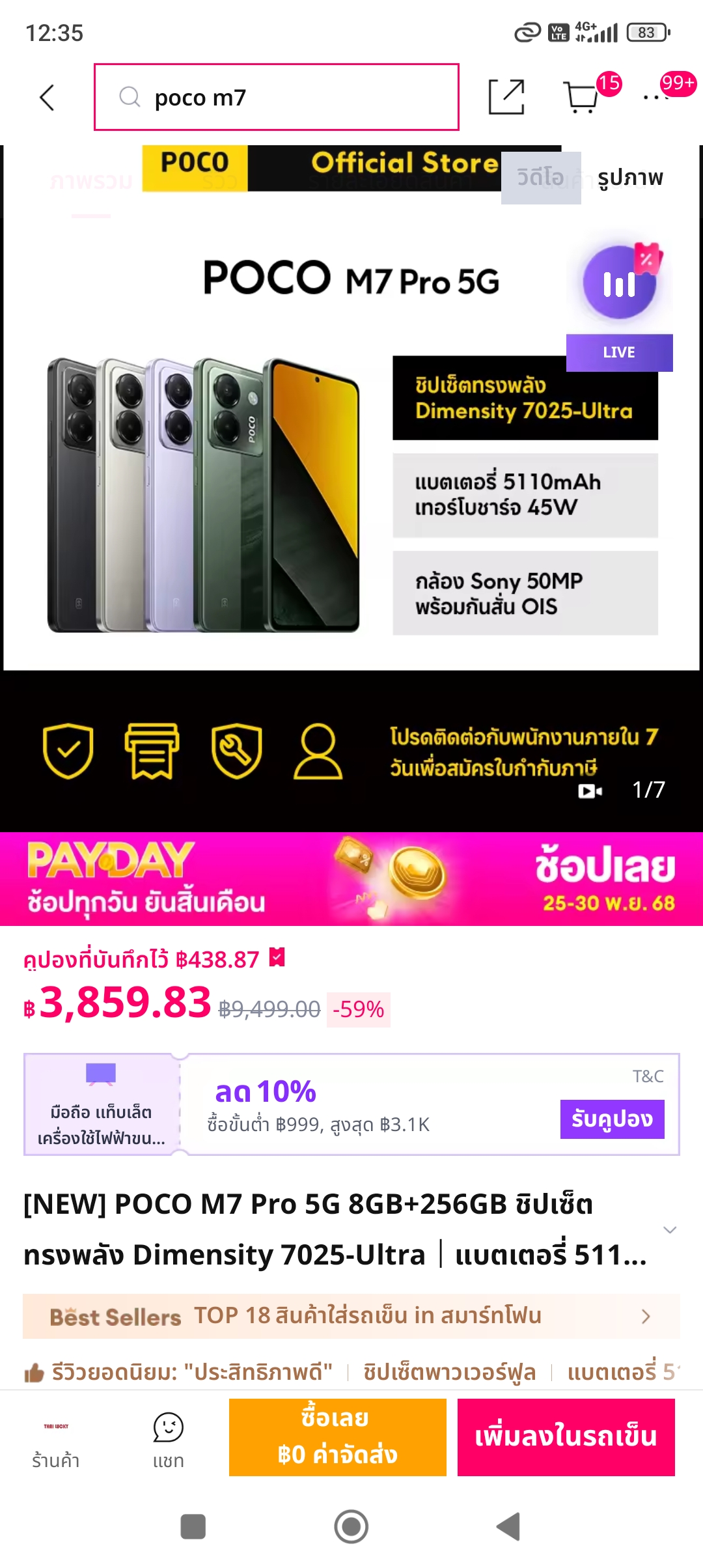 ผมสั่งโทรศัพท์รุ่น poco m7 pro 5g