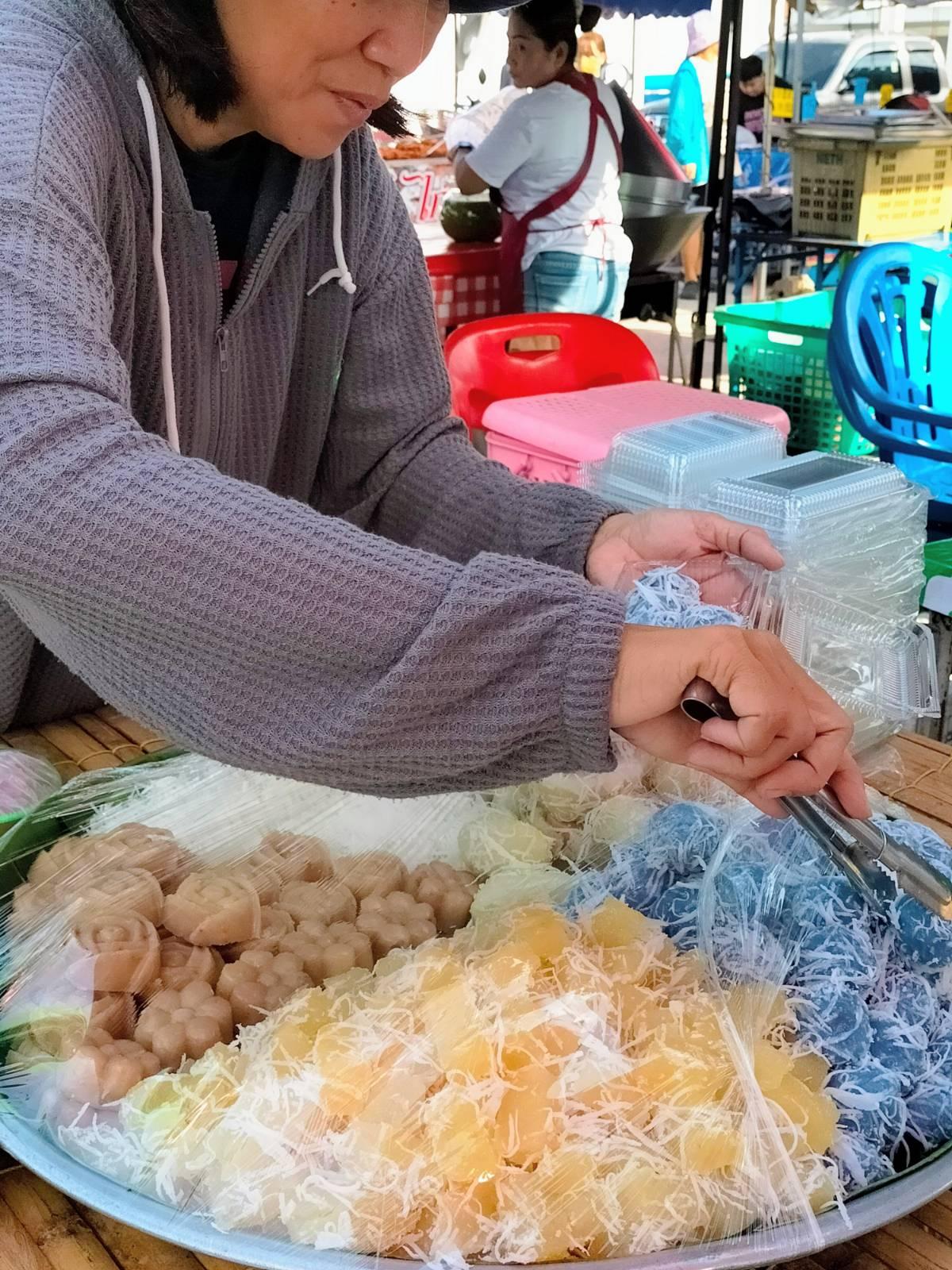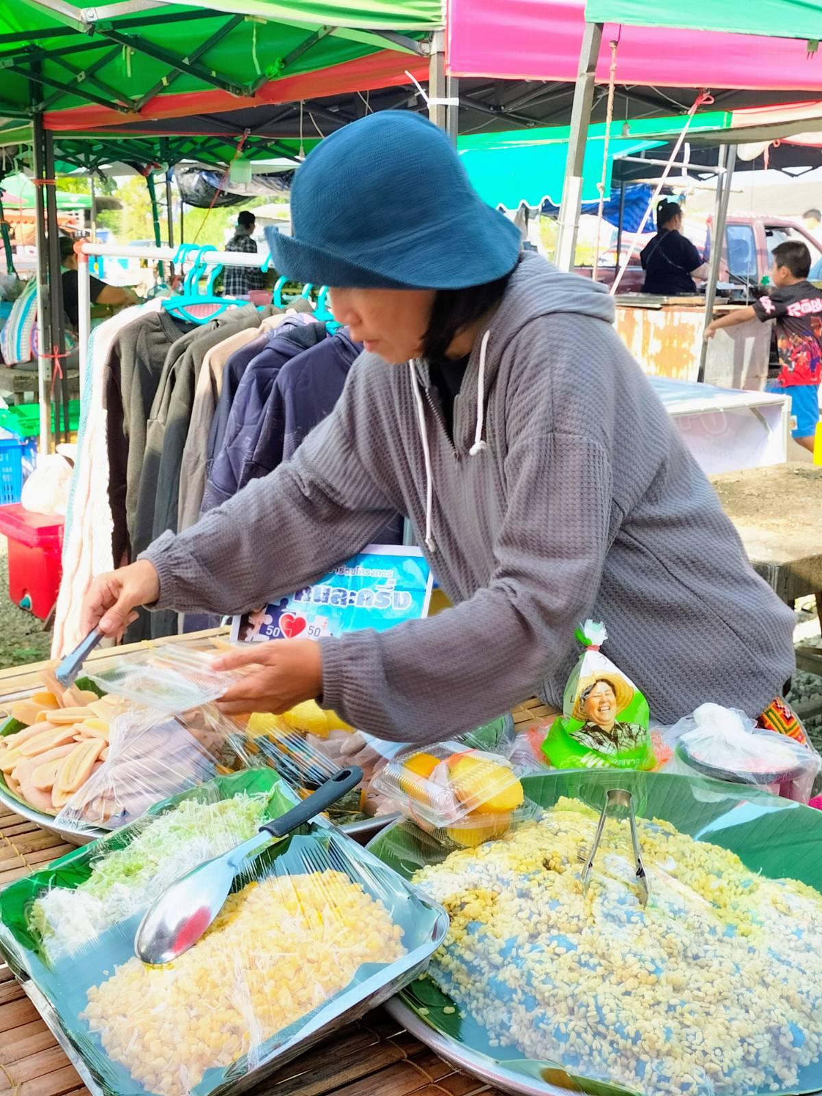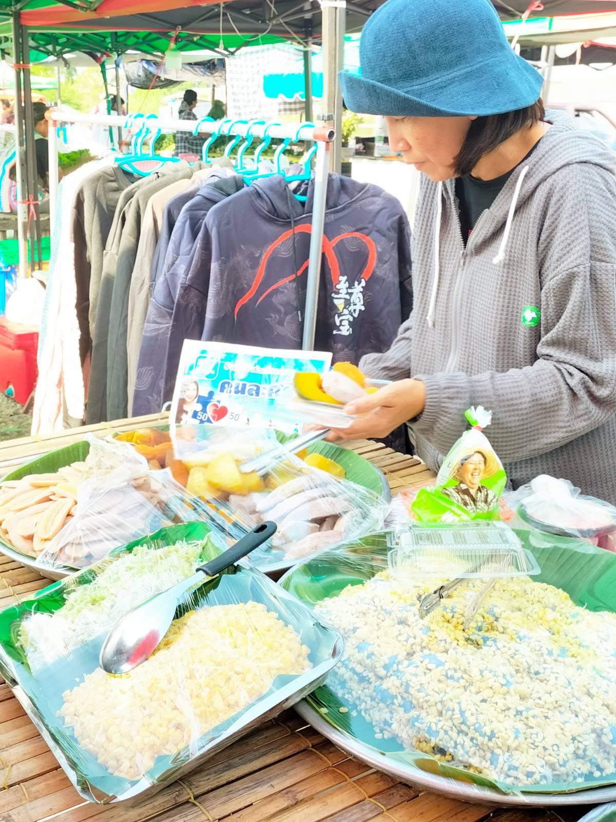 ต่อด้วยตลาดนัด ร้านนี้ขนมเค้าอร่อย และทำสะอาดมาก รับคนละครึ่งด้วย จัดไปให้เต็มที่