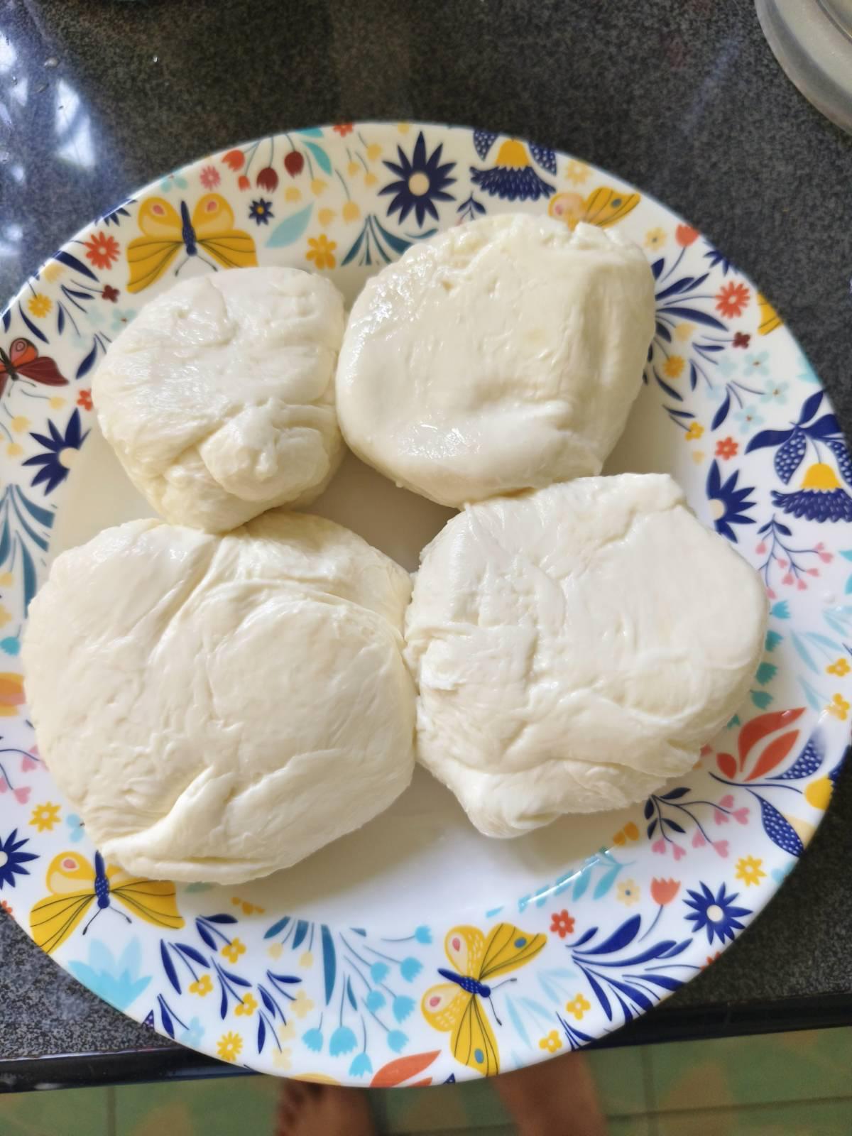 -ยิ่งยืดมากยิ่งหนึบหนับเพิ่มขึ้น เมื่อนวดจนได้ก้อนชีสแช่น้ำเย็นใส่น้ำแข็งเพื่อให้ชีสแข็งตัว แล้วสามารถเก็บในน้ำเวย์ ที่ผสมเกลือได้นาน 1-2 อาทิตเข้าตู้เย็น