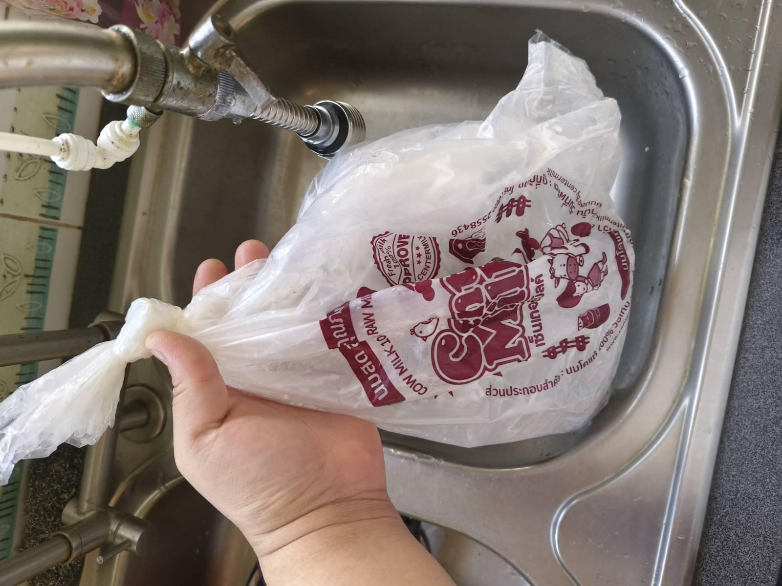 -ใช้มือบีบเคิดไล่น้ำออกให้ได้มากที่สุด