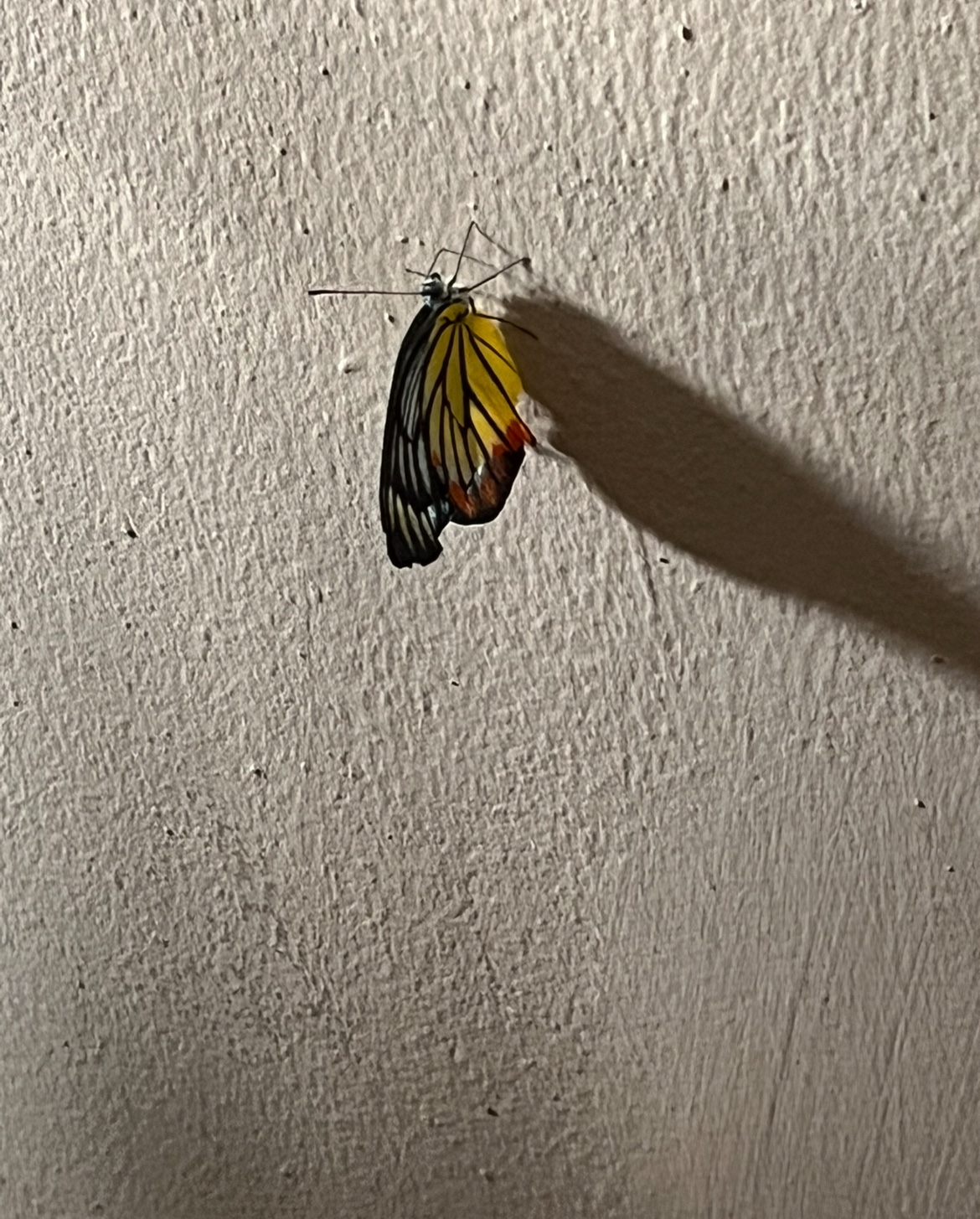 หลายปีมากๆ ไม่เห็นผีเสื้อเลย พอเห็นน้องบินมาเกาะผนังบ้าน เห็นแล้วมันชื่นใจดีจังค่ะ