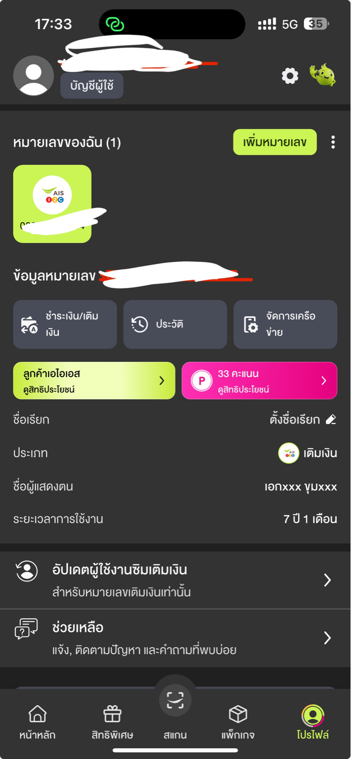 ซิมผมเป็นซิมเติมเงินใช้มา 7 ปี แล้วอยากได้แพ็คเน็ต 5g No limit ครับ