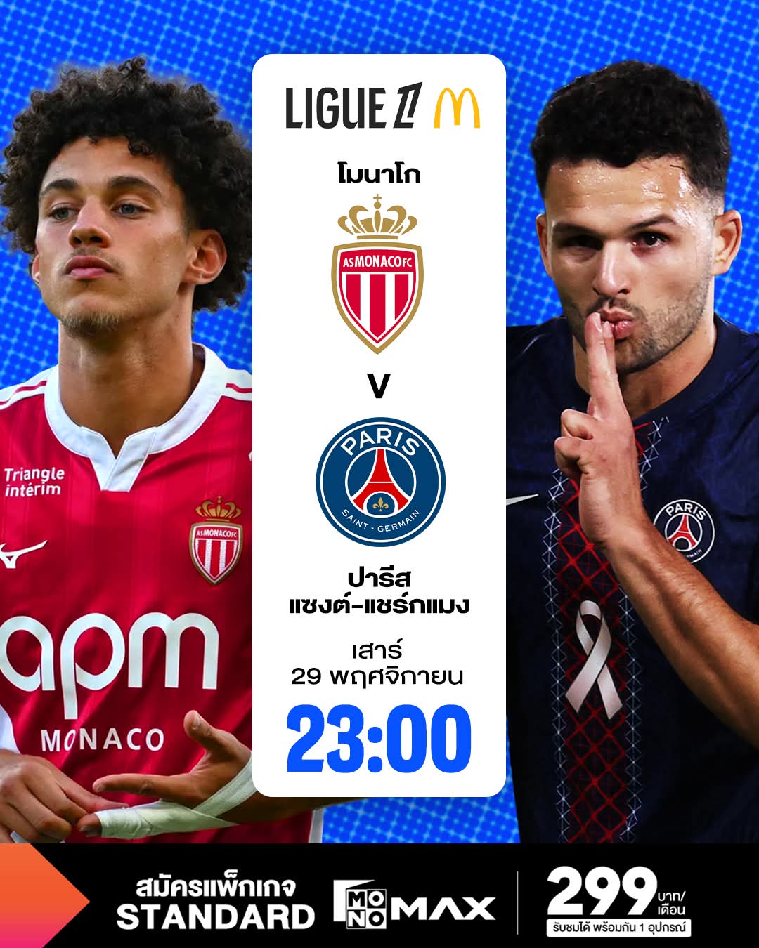 🔥 บิ๊กแมตช์ ⚽🇨🇵 "ลีกเอิง" ประจำสัปดาห์ 🧐 โมนาโก พบ ปารีส แซงต์-แชร์กแมง 🔴 29 พฤศจิกายน 68 เวลา 23:00 น.