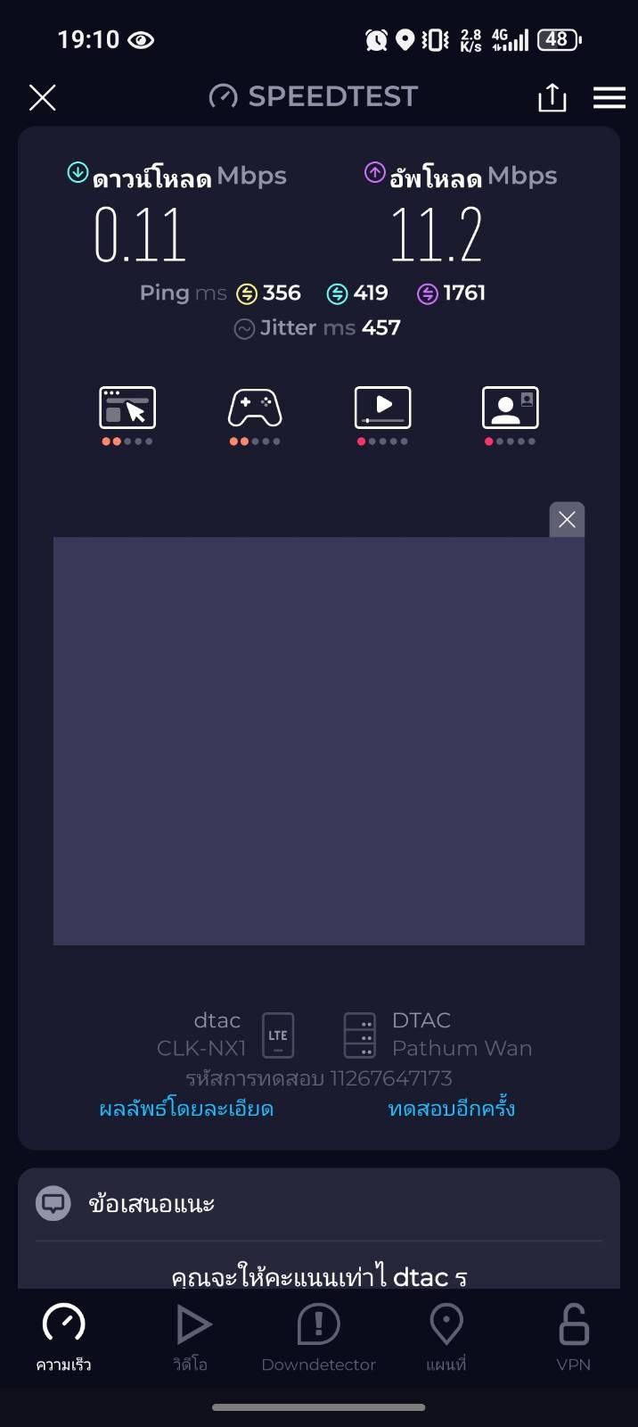 คือว่าผมเริ่มใช้เน็ตของ dtac เริ่มจากโปร 4 Mbps ไม่อั้น ก็รับได้ตามสภาพน่ะครับ เชื่อม Note book ดู Youtube ได้ปกติหลังๆรู้สึกว่าเริ่มช้าเลยเปลี่ยนมาเป็น 6 Mbps ไม่อั้น เชื่อม Note book เล่น Valorant ไ