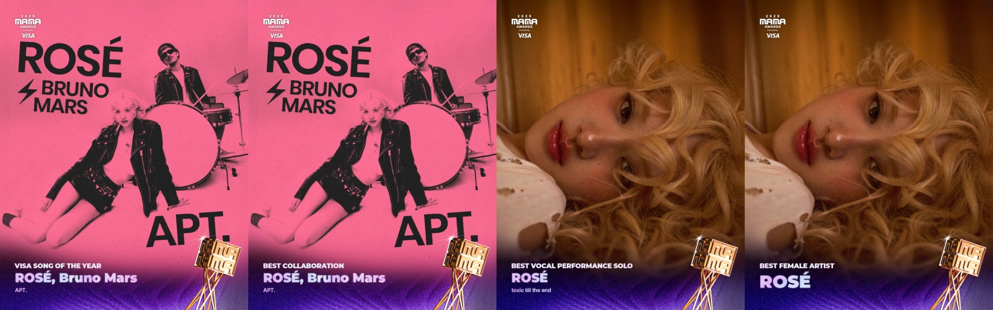 ROSÉ คว้า 4 รางวัล รวมแดซังเพลงแห่งปี จากงาน MAMA Awards ประจำปี 2025 🏆