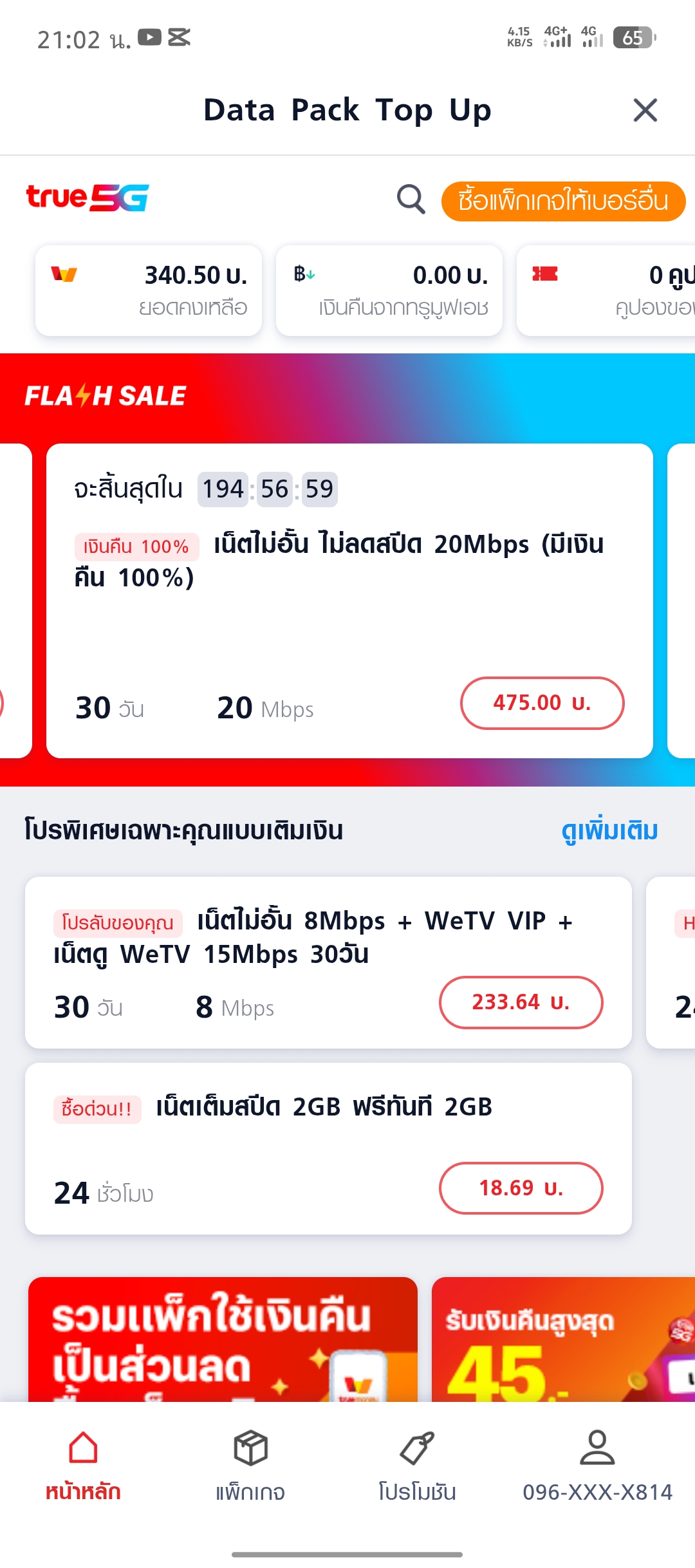 คือเรากดสมัครแพ็กเกจ เน็ตไม่อั้น 20Mbps สปีด 20Mbps เน็ตไม่จํากัด 30 วัน 475 บาท ไม่รวมภาษี ที่เป็นดีลพิเศษไปอะคะ แล้วชำระเงิน ทั้งหมด 508.25 บาทผ่าน ทรูมันนี่ วอลเล็ท แต่เป็นเบอร์ทรูมันนี่ของ ais นะ