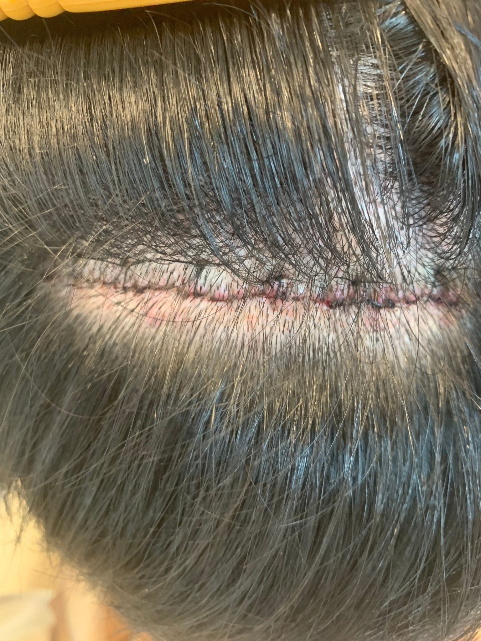 ผ่านมา 10+ปี ทิ้งรอยแผลเป็นขนาด 2 cm ที่บริเวณศีรษะด้านหน้าฝั่งขวา ทำให้เวลาผมยาวแล้วทำให้หน้าม้าแสกแหว่งไป 1 ข้าง (TT)