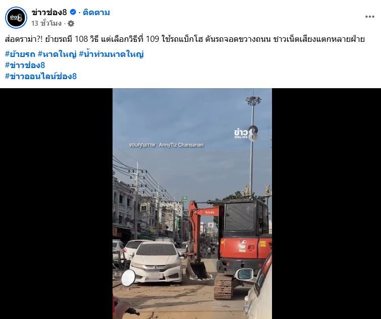 แต่สถานการ์จริงรถจมน้ำพังกองอยู่เต็มถนน จะเอาออกก็ไม่ได้ติดคันนู้นคันนี้เต็มไปหมด กองเกยกันบ้าง ตะแคงบ้าง หลายๆคันก็ตามตัวเจ้าของไม่เจอตายไปกับสายน้ำ หรืออพยพหนีไปไหนไม่รู้ หรืออาจจะกลับลงมาไม่ได้เพราะการจราจรอัมพาต ฯลฯ