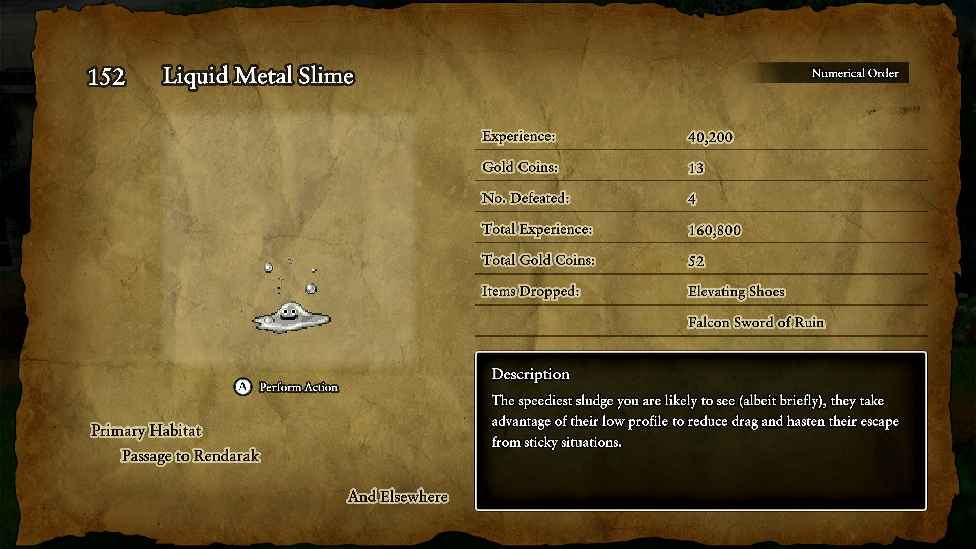 5.ให้ขึ้นเกาะนี้จากนั้นเดินรอบเกาะหรือใช้ Abilities ชื่อ Whistle (くちぶえ) ผิวปากไปเรื่อยๆจนกว่าจะเจอ Liquid Metal Slime (はぐれメタル) ซึ่งจะออกมาสูงสุด 4 ตัว
