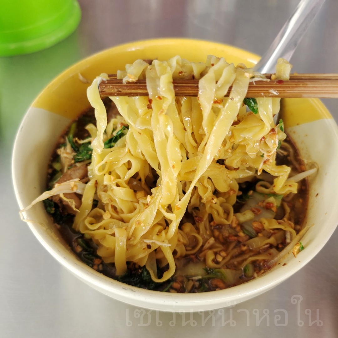 น้ำซุปหอมๆ เข้มข้นๆ รสชาติดีเลยครับ เส้นบะหมี่แบนก็อร่อย