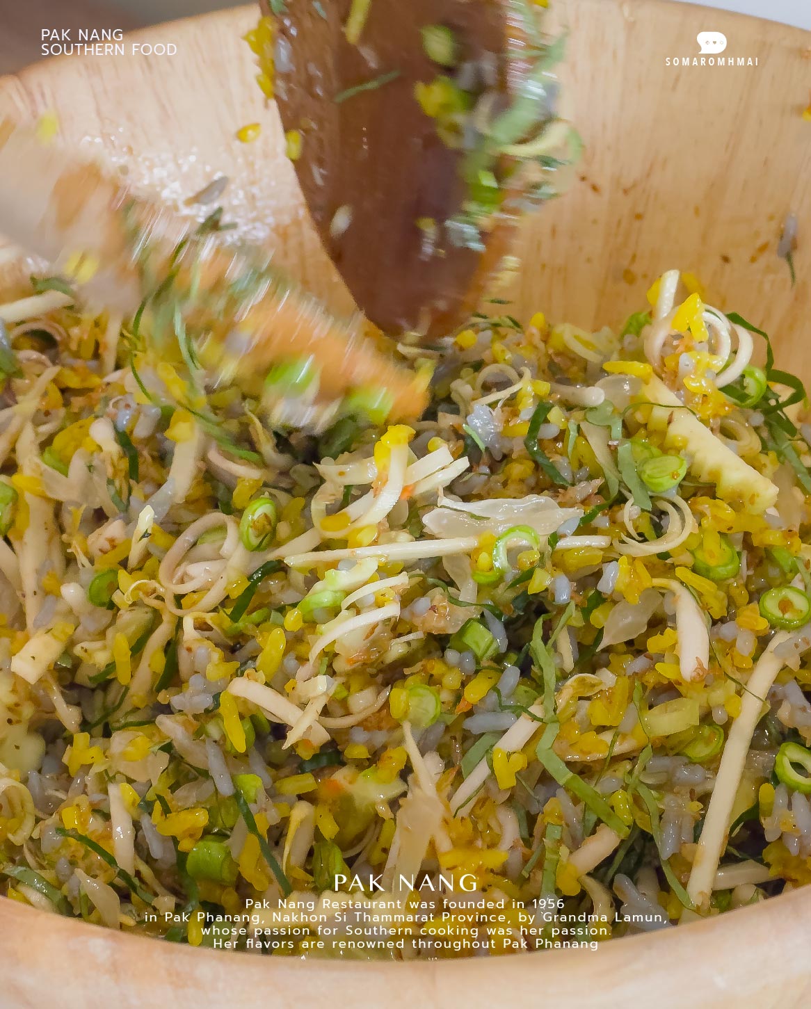 : ยกมือสองข้างขึ้นเหนือหัว ยกทำไม งง เป็นรสชาติยำที่ไม่เคยพบเจอ เป็นข้าวยำที่อร่อย หวานๆ เปรี้ยว เค็ม ครบรส มีข้าวสีเหลือง+ฟ้า เข้ากันสวยมากน่าทาน ห้ามพลาดสั่งเมื่อมาร้านปากนัง