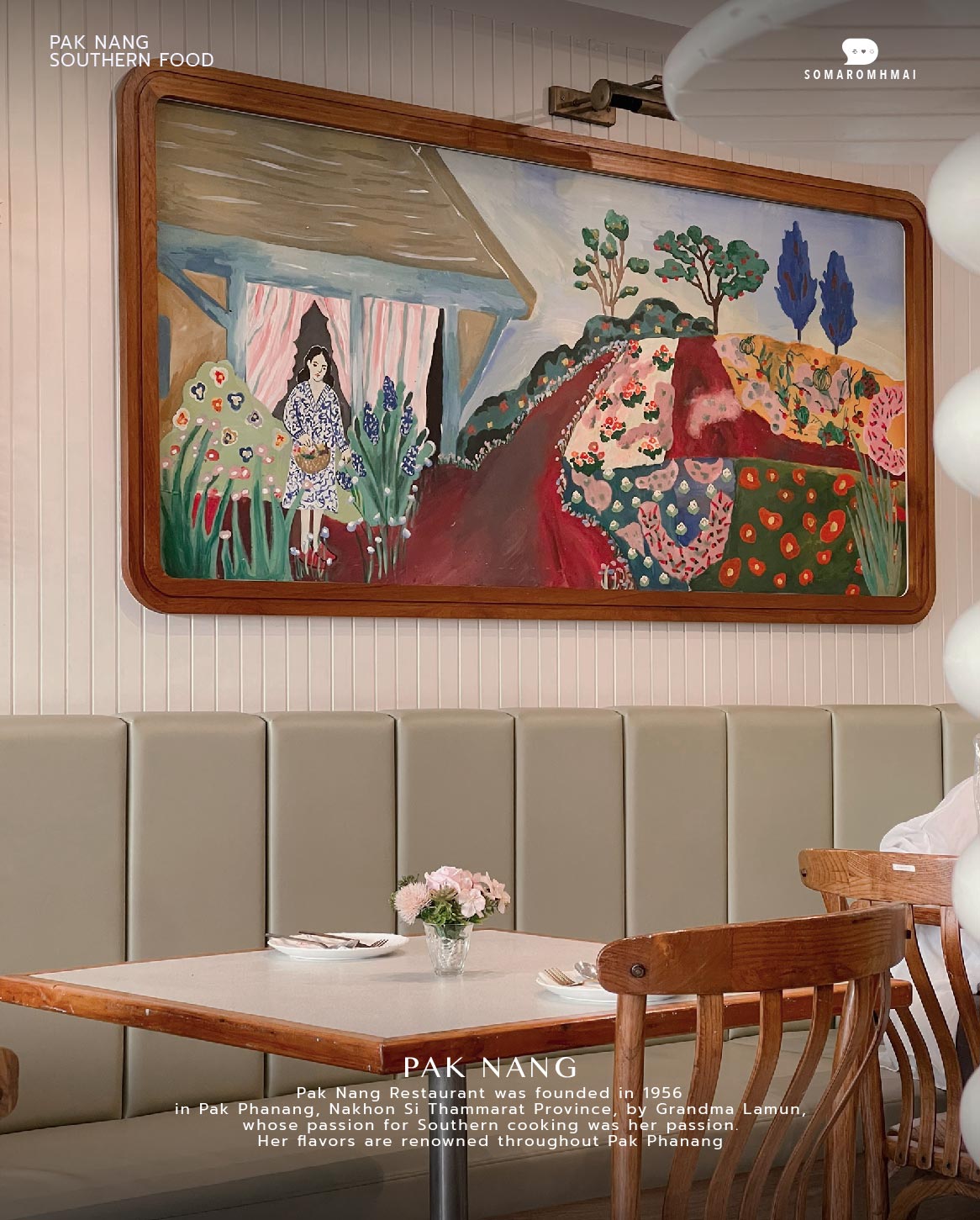 ร้านปากนัง เริ่มต้นเมื่อปี พ.ศ. 2499 ณ เมืองปากพนัง จังหวัดนครศรีธรรมราช โดยคุณยายละมูลที่รักการทำอาหารใต้เป็นชีวิตจิตใจ รสชาติเป็นที่กล่าวขานแห่งเมืองปากพนัง ตำนานความอร่อยที่สืบทอดมาสู่รุ่นต่อรุ่น ระยะเวลากว่า 65 ปี