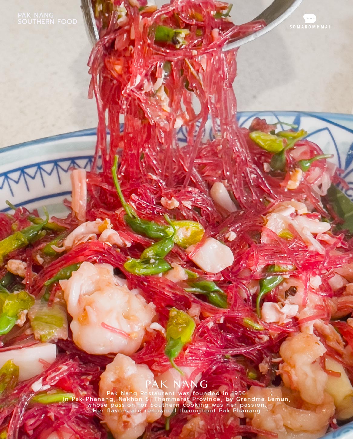 : กุ้งเเน่น ผัดแห้ง เส้นสีชมพูอมแดง น่าทานต้องลอง