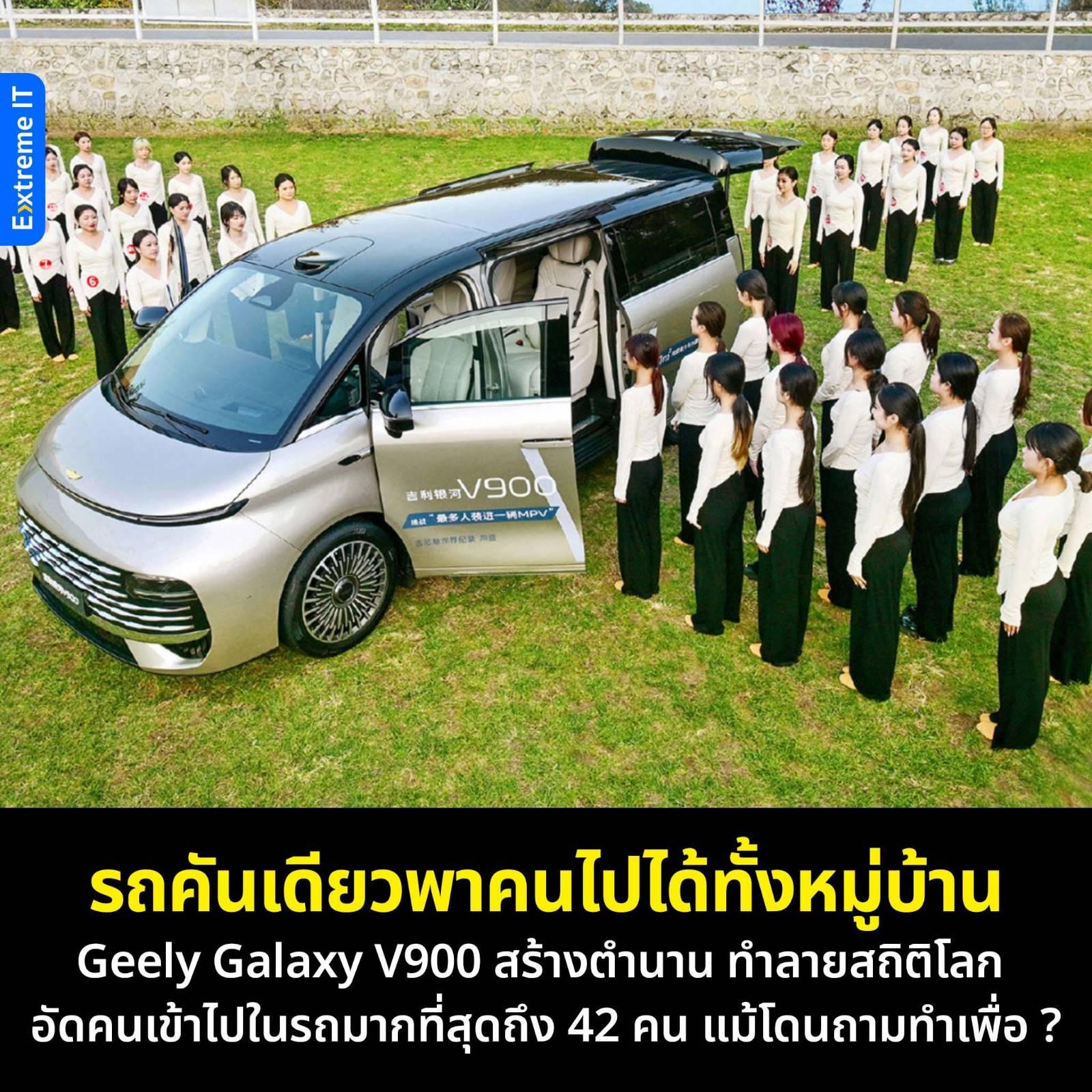 จีนเล่นใหญ่ทำลายสถิติโลกอีกแล้วกับรถ Geely Galaxy V900 รถ MPV ตัวใหม่ล่าสุด ด้วยการทำลายสถิติในการจุคนได้มากที่สุดถึง 42 คน