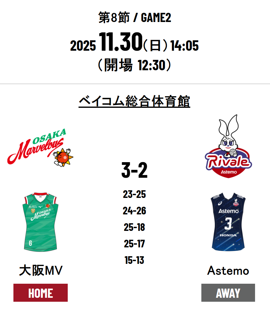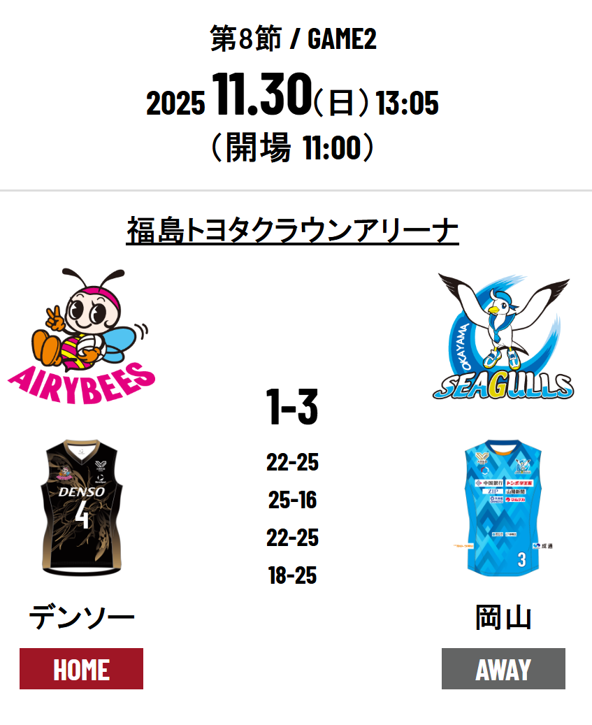 DENSO Airybees 1 - 3 Okayama Seagulls