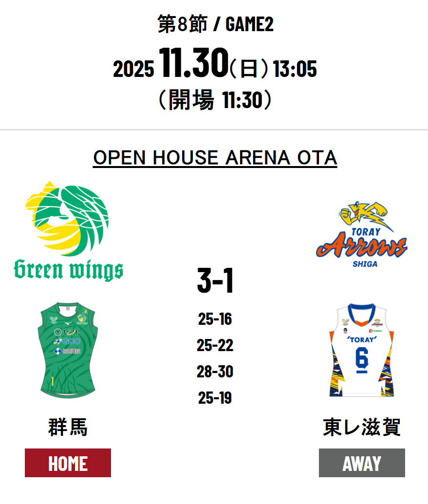 Gunma Green Wings 3 - 1 Toray Arrows Shiga