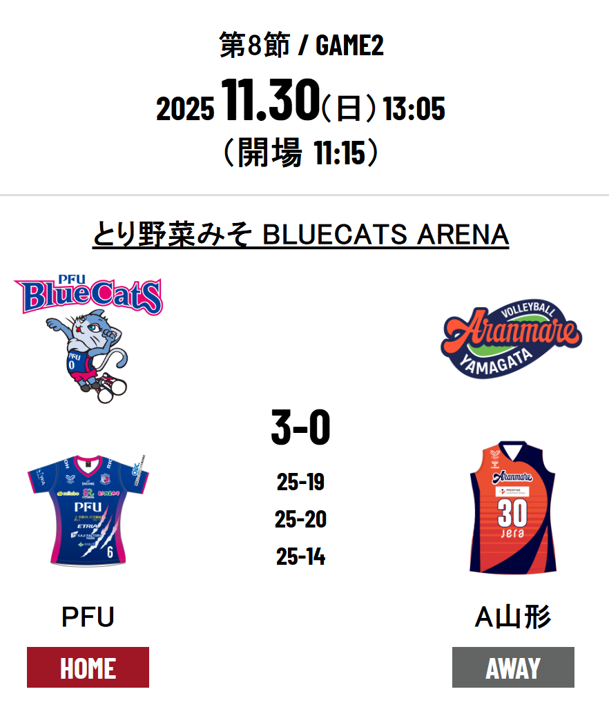 PFU Bluecats Ishikawa Kahoku 3 - 0 Aranmare Yamagata