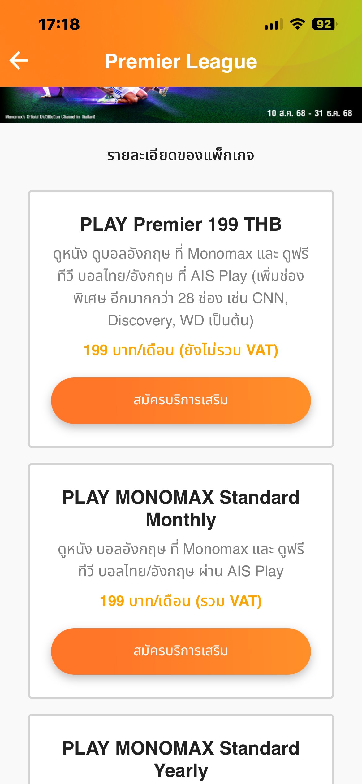 ขออนุญาตสอบถามเรื่องโปร premier League ครับ
