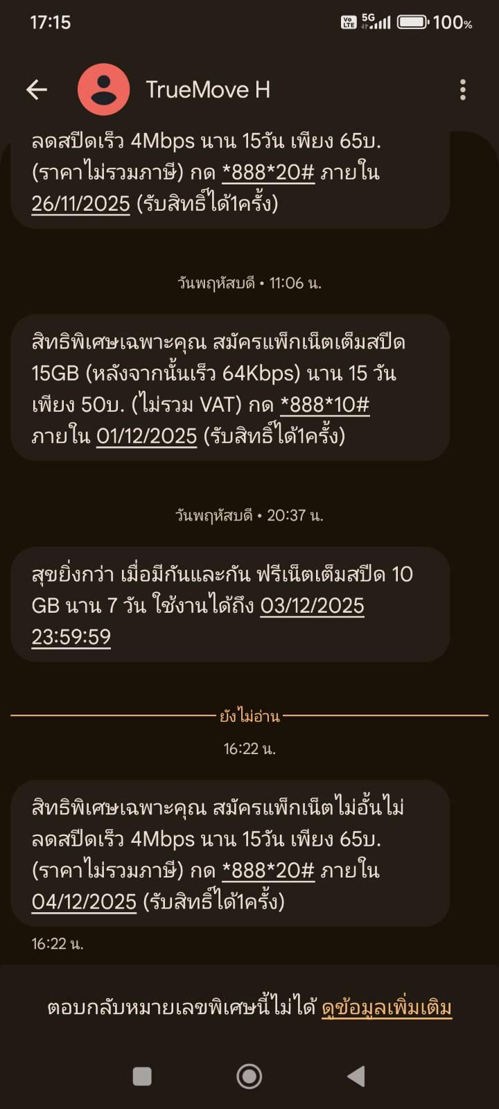 จะให้สมัครโปรทับกันรึยังไง ขยันส่ง SMS แต่เบอร์ที่มีแพ็กเกจอยู่แล้ว อีก 2 เบอร์ ก็รอไปสิ แทนที่จะได้ยอดขาย โปรล่างสุดเลยที่อยากสมัครให้อีก 2 เบอร์ กดสมัครไปก็บอก เบอร์นี้ไม่ได้สิทธิพิเศษ😵💫