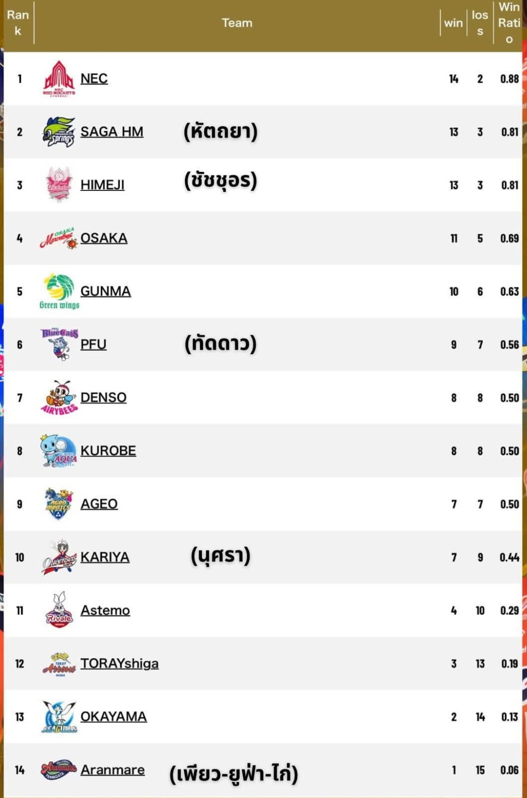 ตารางคะแนนลีคญี่ปุ่นวีคสอง NECและHimejiไร้พ่าย/PFUติดท็อปแปด/ทีมสามทหารเสืออรันมาเร่ยังไม่จมบ๊วย😍😍😍😍