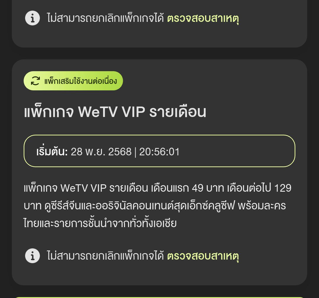 สมัคร package WeTV กับทาง Ais แล้ว ใช้งานไม่ได้