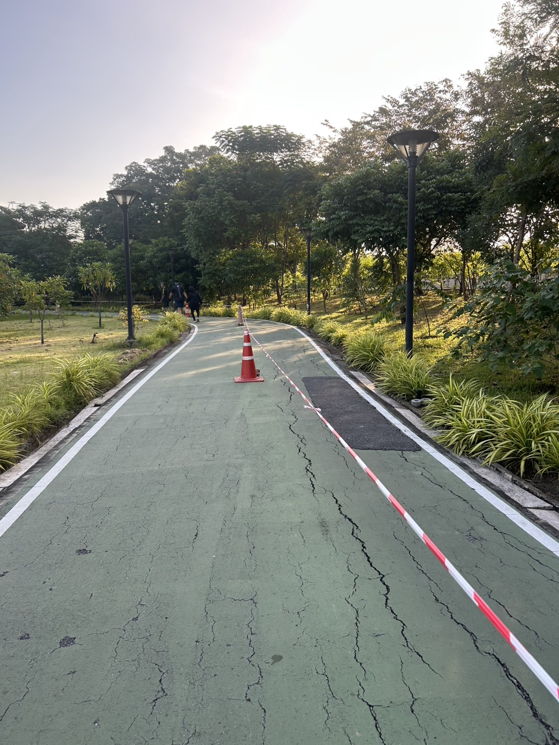 1. ตอนนี้มีเส้นลู่วิ่ง และเส้นลู่ปั่นจักรยาน แบ่งกันชัดเจน โดยหลายเดือนมานี้ เส้นลู่ปั่นจักรยานน่าจะทรุด (มาหลายเดือนแล้ว) ทำให้ต้องแบ่งลู่วิ่งมาให้ลู่ปั่นจักรยานครึ่งหนึ่ง (ที่สงสัยคือทำไมผ่านมาหลายเดือนทางกทม ไม่ซ่อมแซมสักที หรือต้องรอช่วงหาเสียงที่จะเลือกผู้ว่าคนใหม่เร็วๆนี้)