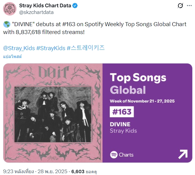 🔥 Stray Kids "DO IT" เปิดตัวที่อันดับ 42 บนชาร์ต Spotify Top Songs Global รายสัปดาห์ ด้วยยอดสตรีมที่ผ่านการกรอง 13,973,712 ครั้ง
