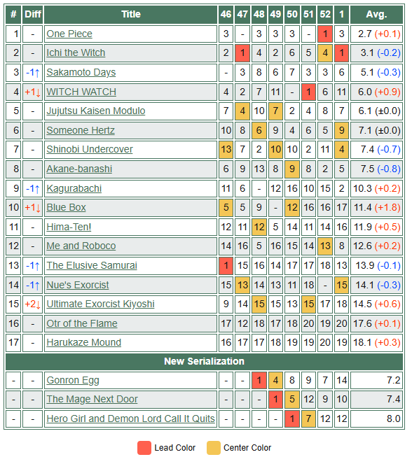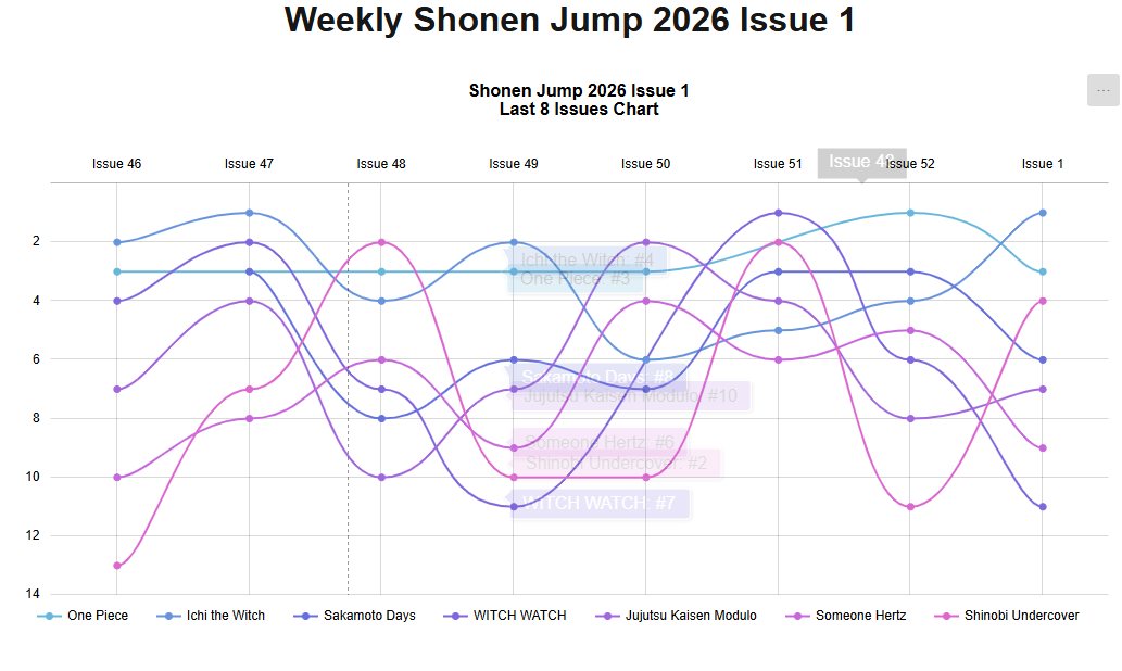 รายงานผลจัดอับดับและการเคลื่อนไหวของ โชเน็นจัมป์ตั้งแต่เล่มที่ 1/2026 เริ่มต้นปี 2026