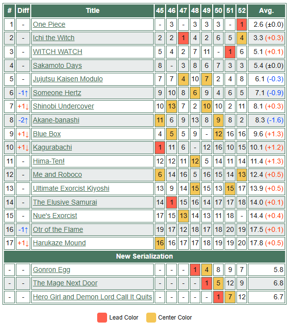 ด้านบนคือค่าเฉลี่ยของการจัดอับดับการ์ตูนจัมป์ในปัจจุบัน ช่วง 8 สัปดาห์ จะพบว่า