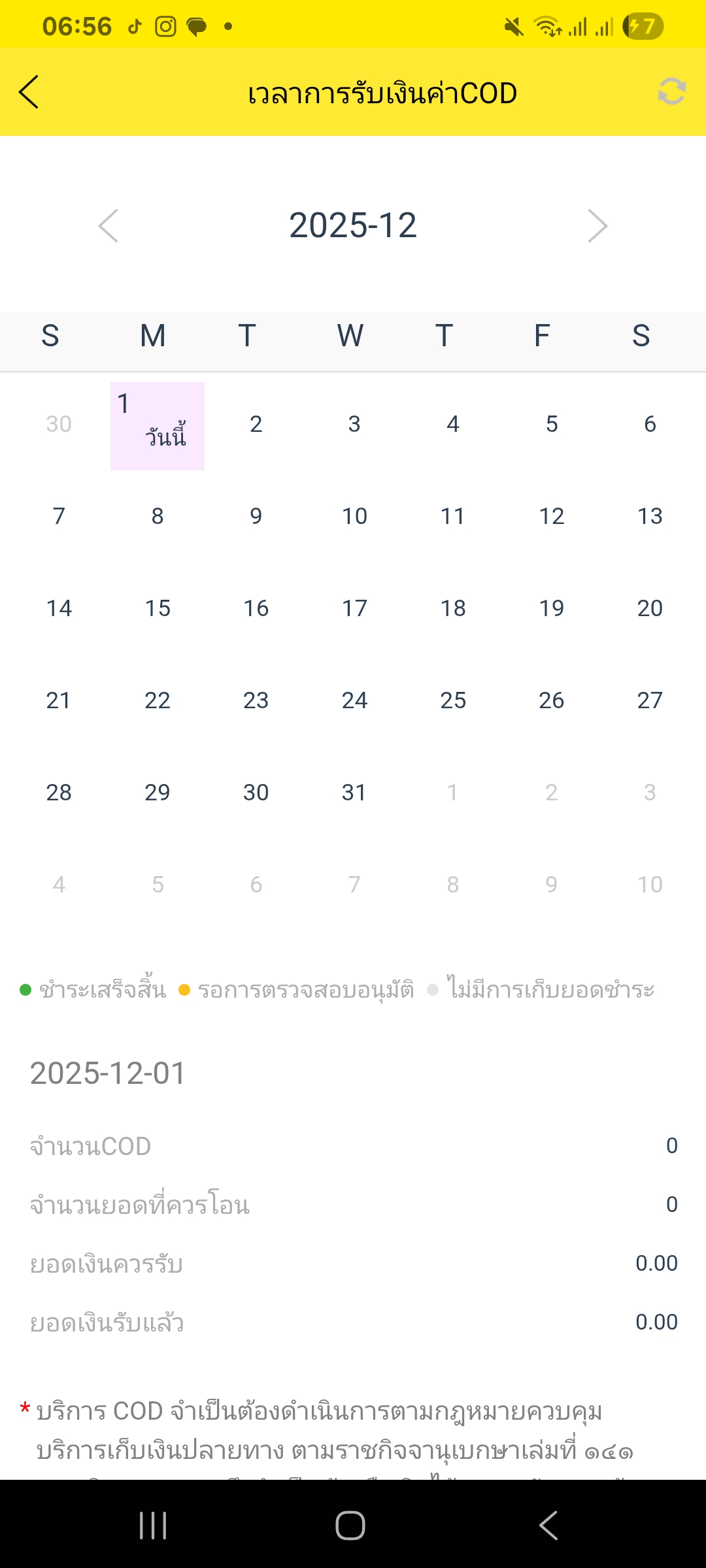 ลูกค้าเซ็นรับพัสดุแล้วเมื่อวาน ปฏิทินCODจะเป็นสีเหลืองตอนไหนครับ