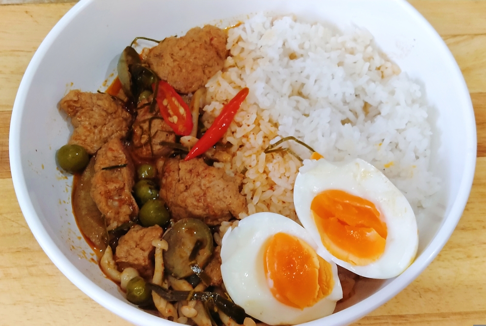 ข้าวราดพะแนงหมูเจ 🍛🍖🥬