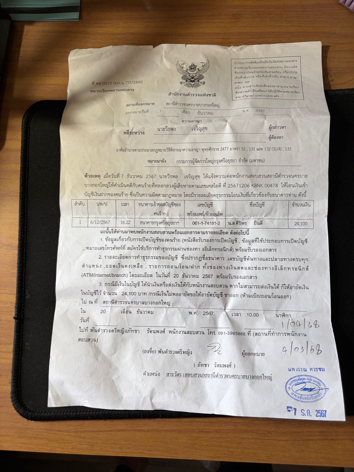 มิจฉาชีพ ตำรวจแห่งชาติ ธนาคารกรุงศรีอยุธยา
