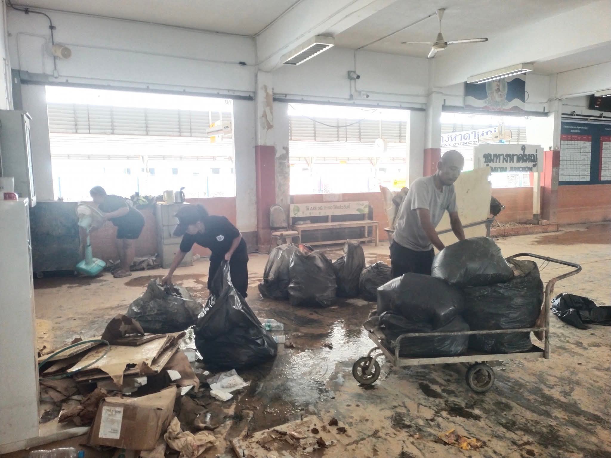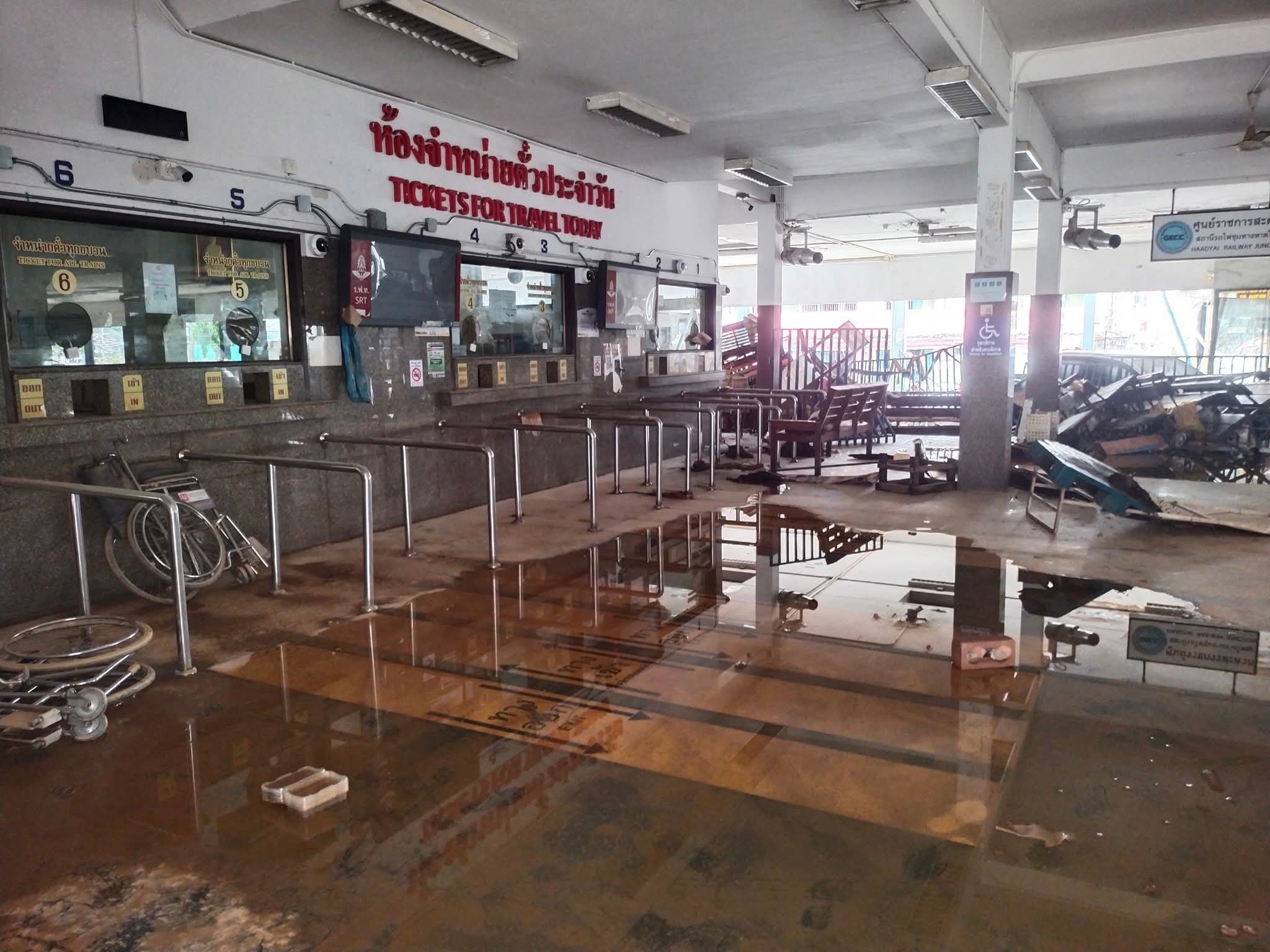 ความยับเยินของสถานีรถไฟชุมทางหาดใหญ่ ; จนท.พยายามเร่งซ่อมแซมแก้ไข ให้กลับมาใช้งานโดยเร็ว